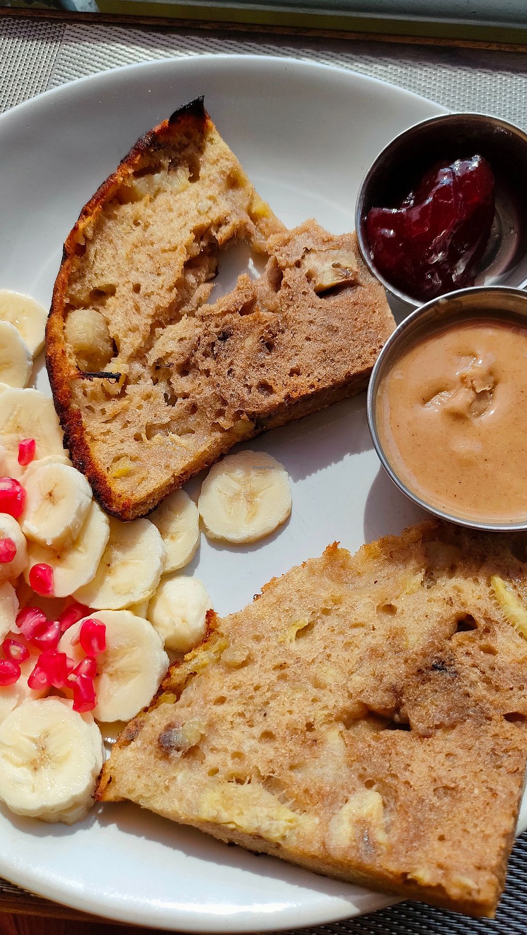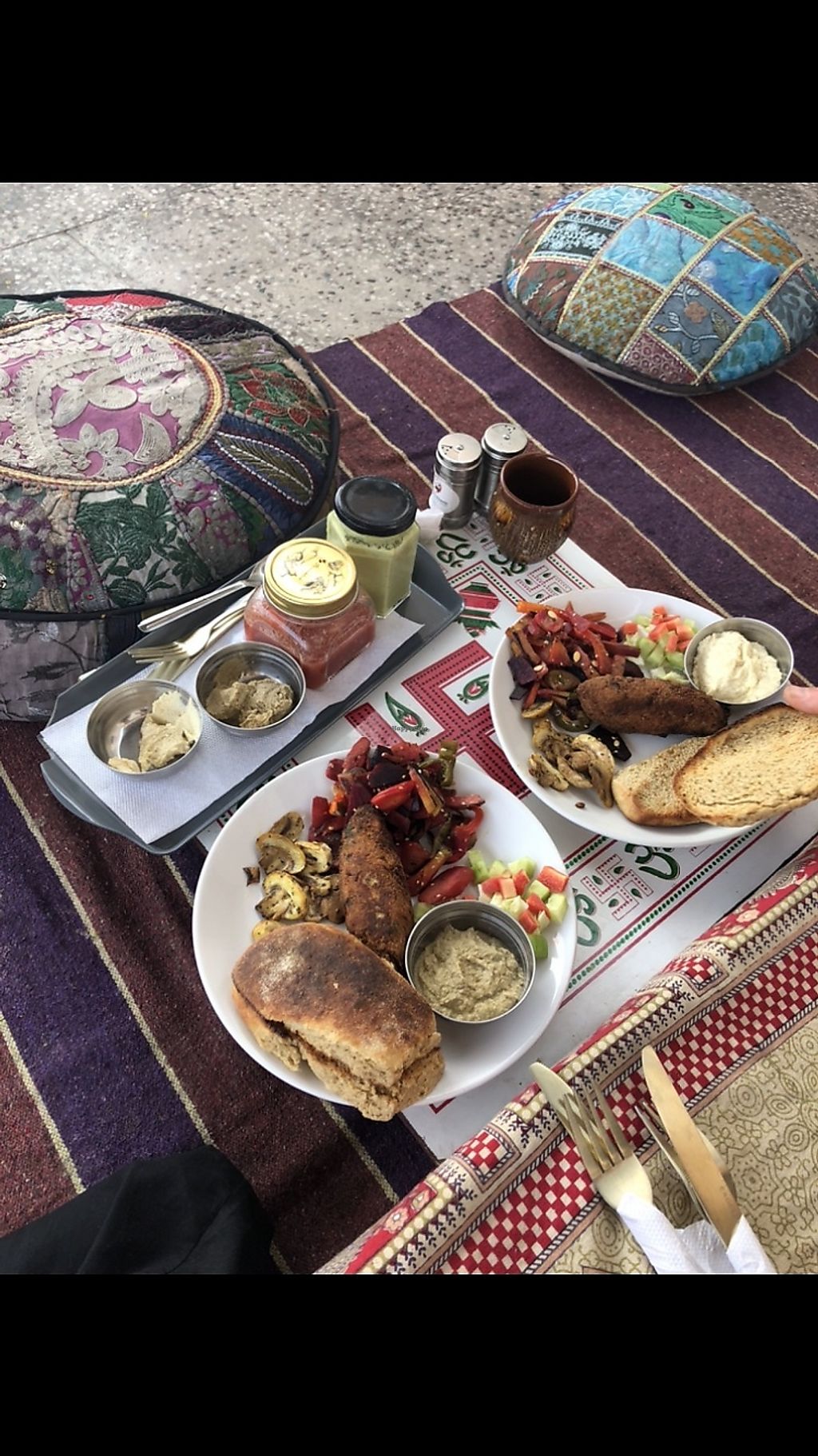 This is hands down the best meal I had in India. As a vegan, it’s epic they have a separate vegan menu, but I ordered a side from that - the big Buddha breakfast , swapping out halloumi for eggplant dip. Honestly unreal. Vegan sausage home made, home made bread, home made chunky Tom sauce and green chutney. I’ll add a photo. 50%! Of proceeds go to a children’s charity.