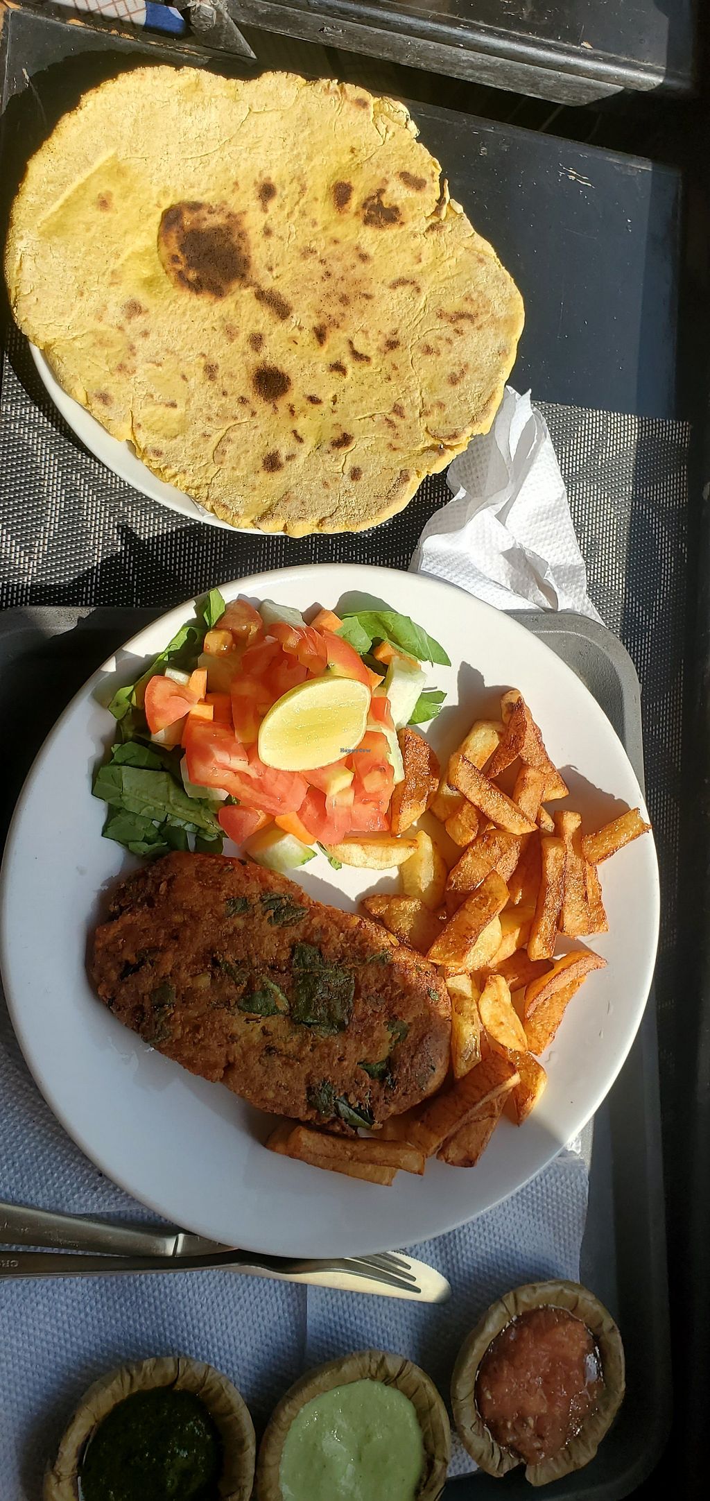 Read moreI had the pakoras and vegan burger with fries that came with a homemade green sauce, pushkar rose soda that you could mix as you like and vegan pancakes with selfmade peanut butter everything was amazing!