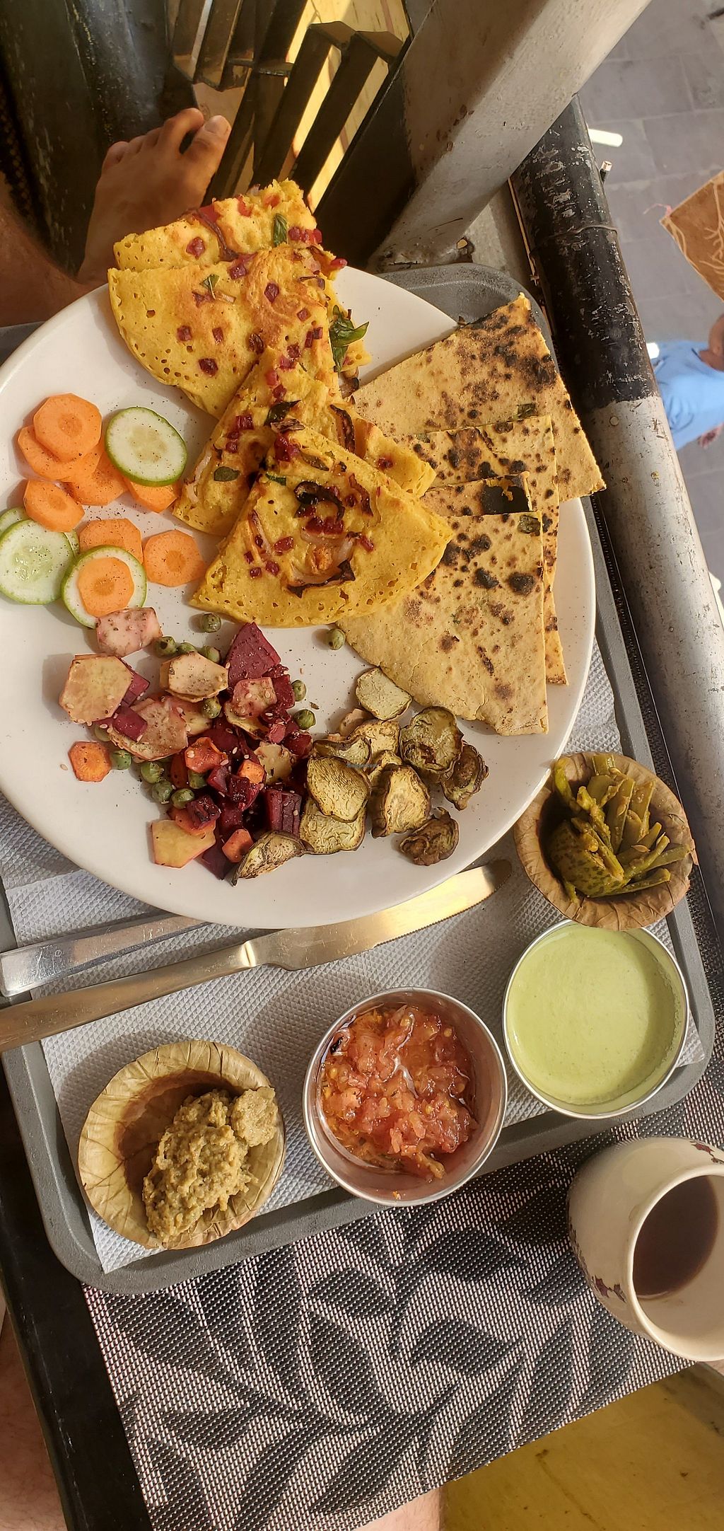 We loved Laughing Buddha and visited many times in our 10 days in Pushkar. Sheru is an absolute gem and they have a separate vegan menu to make it easier to order. Our favourite place for chai - made with coconut milk - and we almost always ordered the banana cake as it was that good! We also had lunch and breakfast here a few times and were never disappointed.