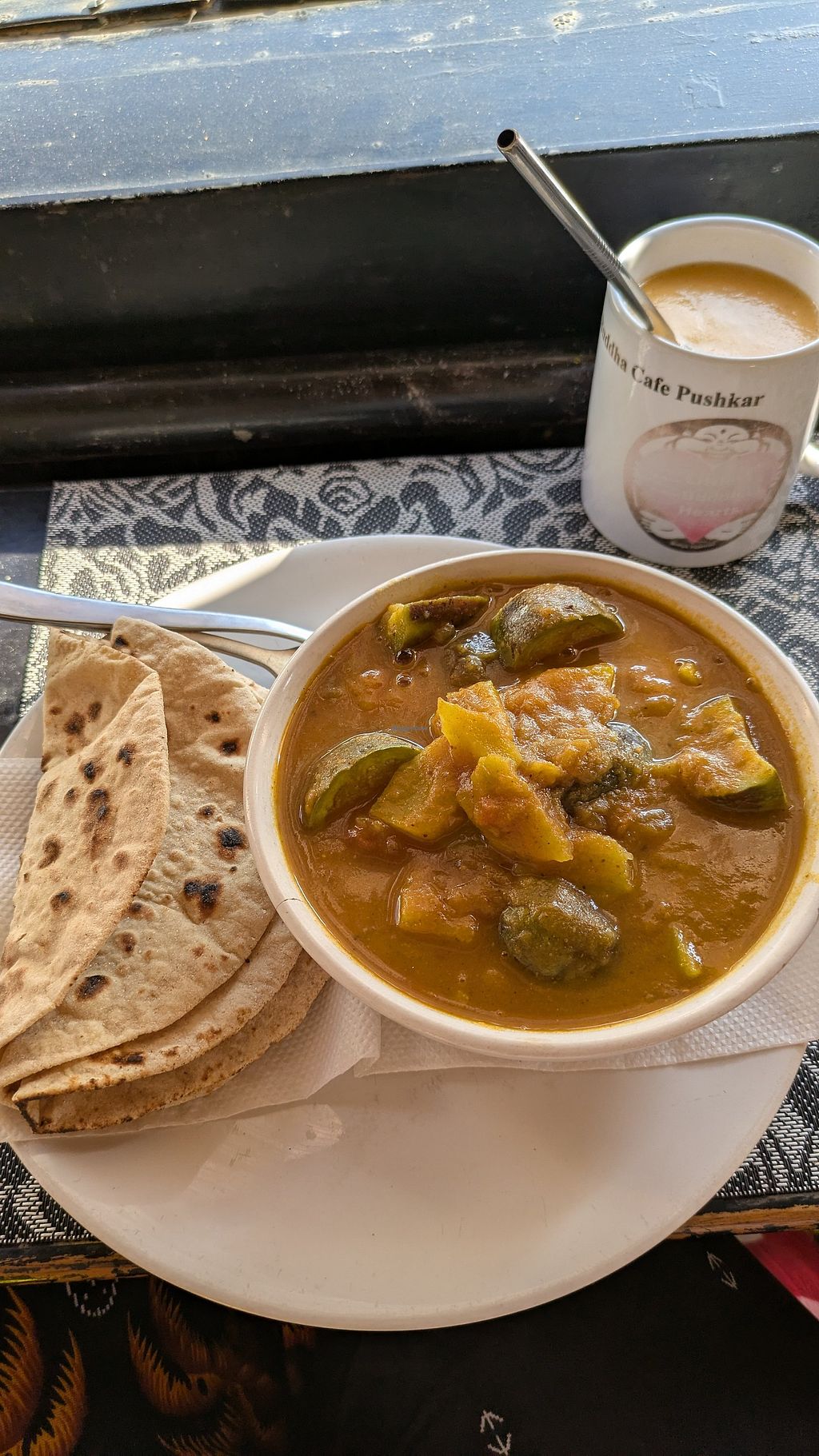 A must visit cafe if you want tasty food, a great view and friendly service.I ordered the vegan pumpkin curry and it was a huge serve filled with flavour. Support the cafe if you come to Pushkar, the owner helps the vulnerable through his cafe. It’s not easy to find, but just ask shop vendors….they will point you in the right direction.