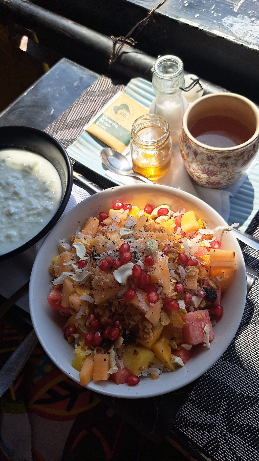 Very nice vegan chai with coconut milk and yummy fruit salad. Amazing smoothie bowls and all the other dishes I've tried. Everything was so yummy and you can really feel that's it's cooked with love and intentions. Biiig portions. One of the nicest homemade food in pushkar. A must try, Sheru is super kind and accommodating to any needs you have! Support him and his beautiful cafe. I'm eating there nearly everyday!