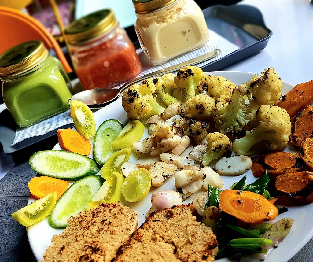 Visited a few times to try out this menu😄the curries are very homemade and don't taste oily! The banana bread is so good it's homemade bread served with cooked banana inside and served with peanut butter ♥️ they have a masala chai with coconut milk (I think you have to add the black tea bag yourself). We also tried a Vegan energy ball which was perfect for our train trip! The guy is so nice :)