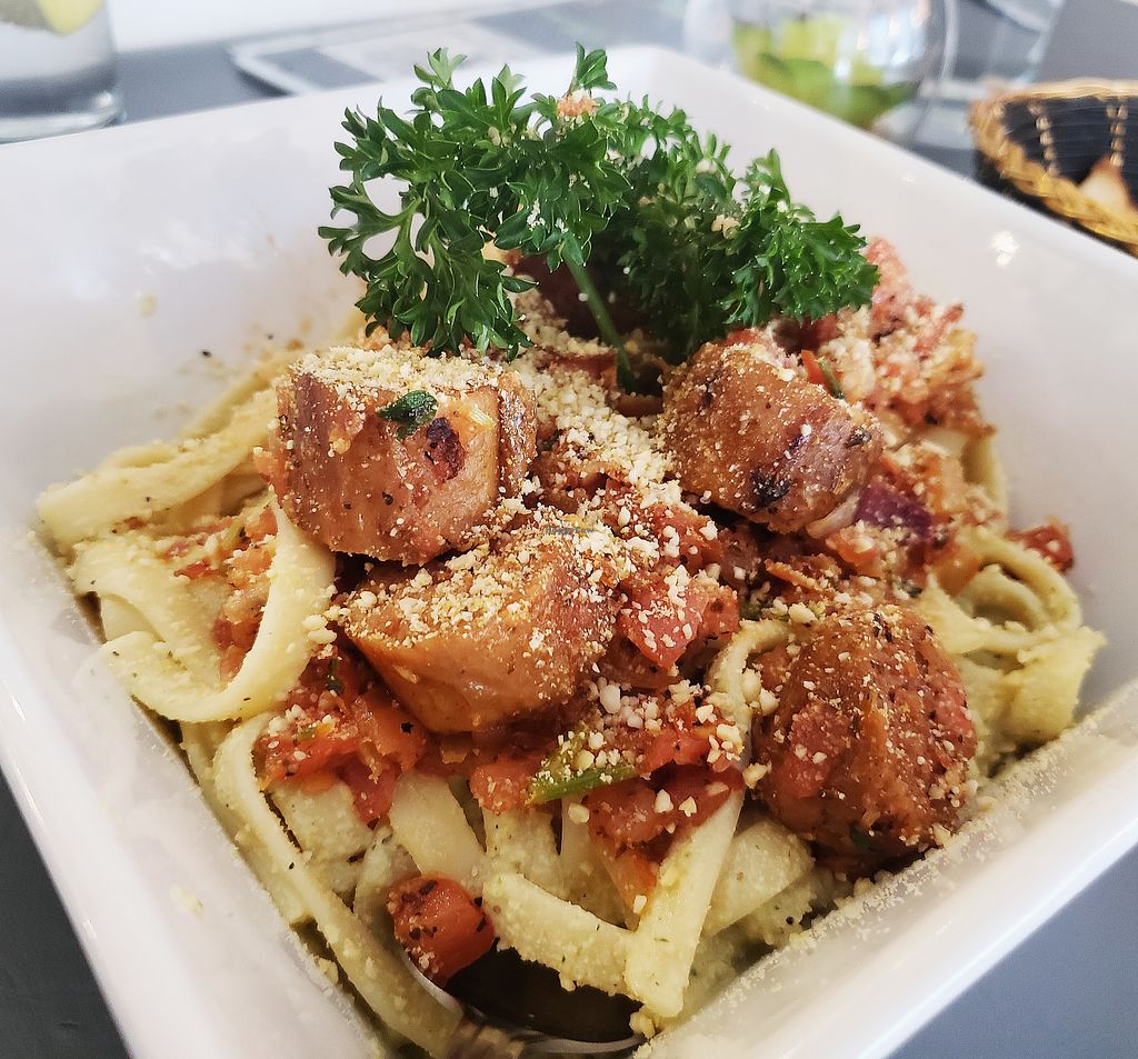 Vegan Mediterranean pasta...Fettuccine cooked in a garlic butter with …