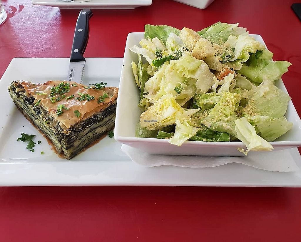 Burek (baked spinach and feta in phyllo pastry) with a side Ceasar sal…