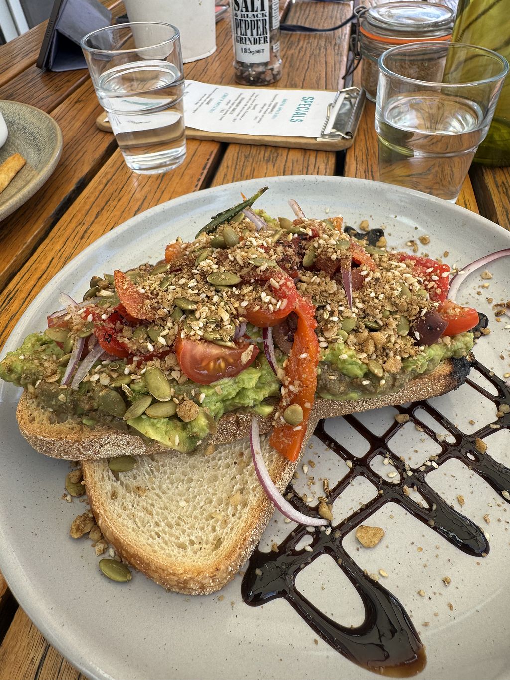 Came again. Had a great avo smash. Very generous serve. $23. My partner had the veggie roll with chips. Also Generous. Had the berry blast with vegan ice cream