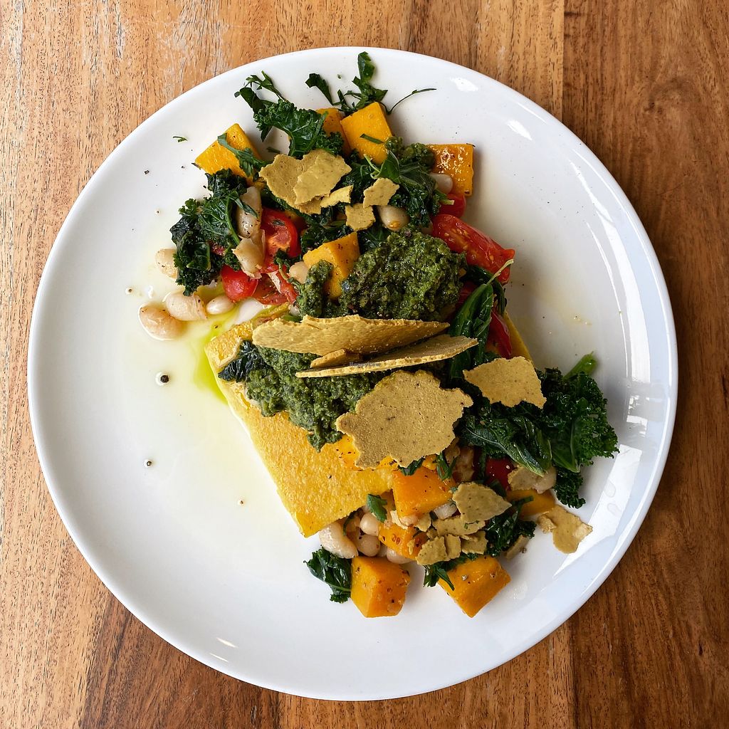 Mostly vegan, gluten free, casual style restaurant in an old converted auto electrics workshop. Has a balance of raw and cooked plant based meals. When possible, items are locally sourced, organic and spray-free. The non-vegan ingredients are bee pollen, honey, eggs and A2 milk which are clearly labelled and are optional additions. Reported closed September 2021.