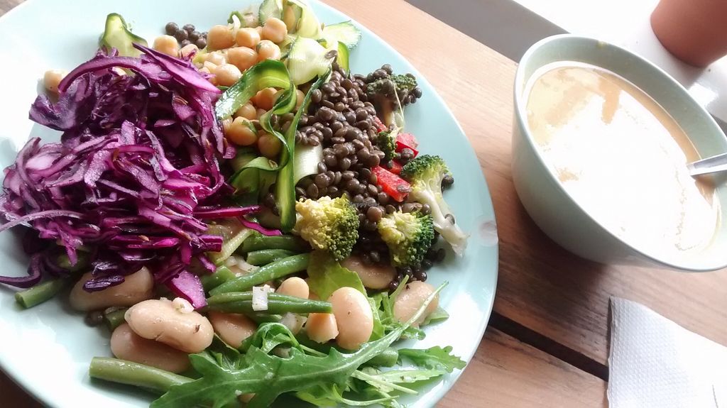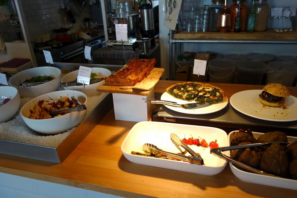 Leuk restaurant met een erg fijne sfeer. Alleen wel wat weinig zitplaatsen. Het overgrote deel van de dingen die ze hadden was vegan, wij hebben dan ook erg veel geprobeerd. Ze hadden heerlijke pizza, soep, pasta, coleslaw en ook superlekkere applecrumble pie. we waren uiteindelijk ongeveer 30 euro kwijt en zaten goed vol. Ook lieve bediening!