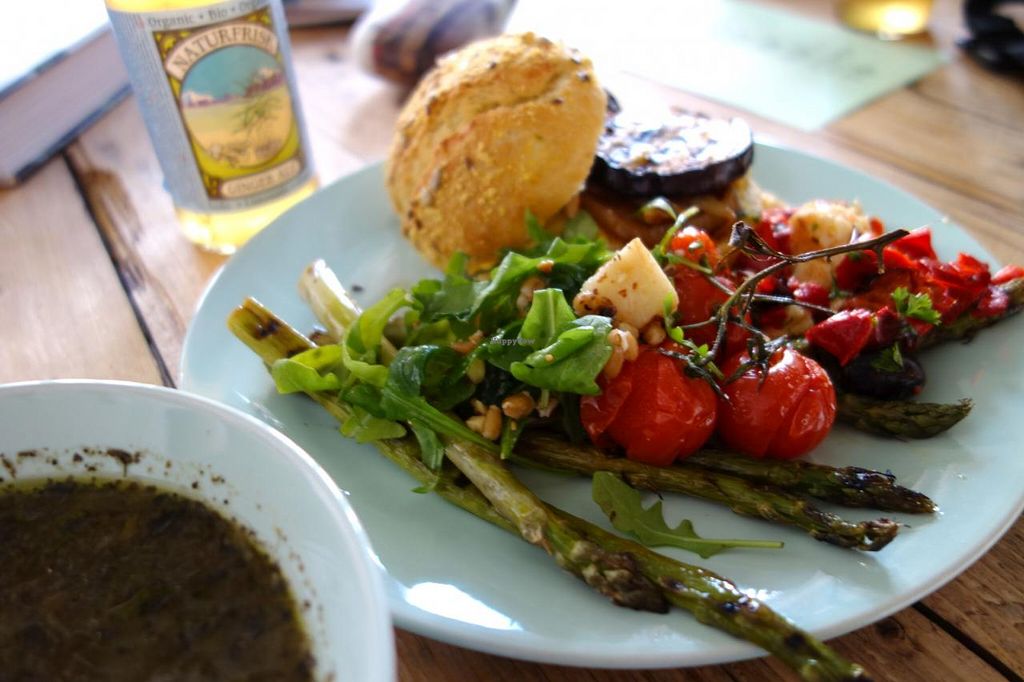 I eat a great sandwich with eggplant. The salads were good but simple. Unfortunately there wasn't any vegan cake the day I visited The Living. I hope the next time I visit this take away there will be more vegan choice (all vegan products are labeled as such). The soya cappuccino was delicious!