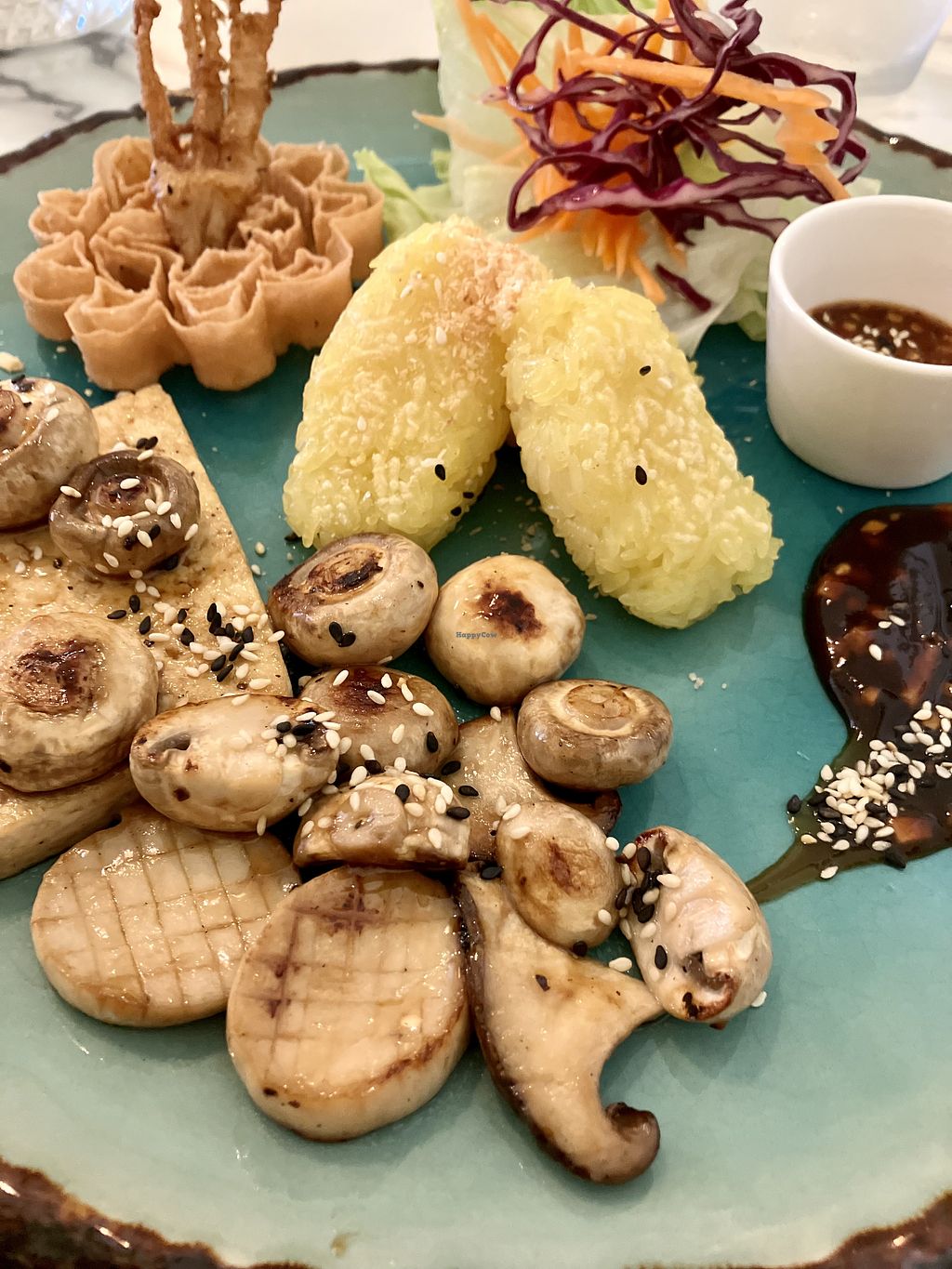 Grilled mushroom with sticky rice (vegan version) - close-up