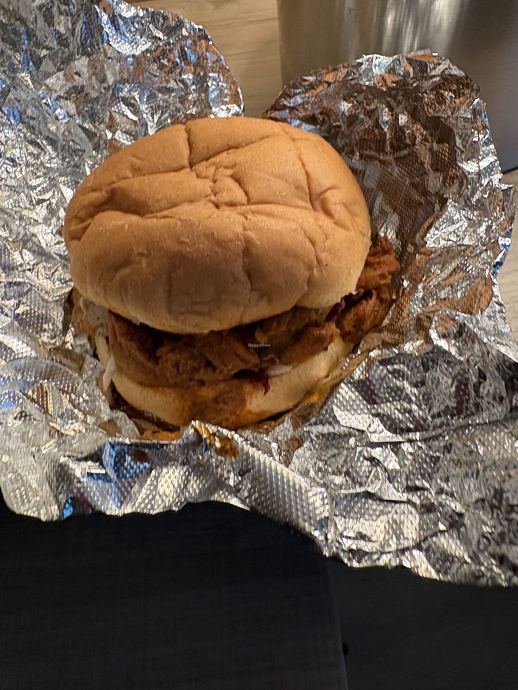 The "chicken" sandwich is one of my favorite things in the world. It's crispy and the sauce is delicious. I've been vegan for 3 years, but this reminds me of Chick-fil-a, without the cruelty. They carry local sodas and always have some baked goods too.