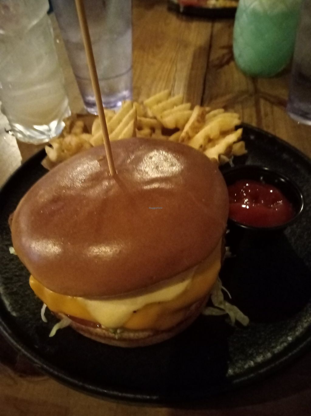 Vegan burger with spice and peanut butter! And with house twisted chip…