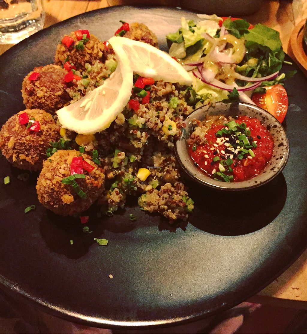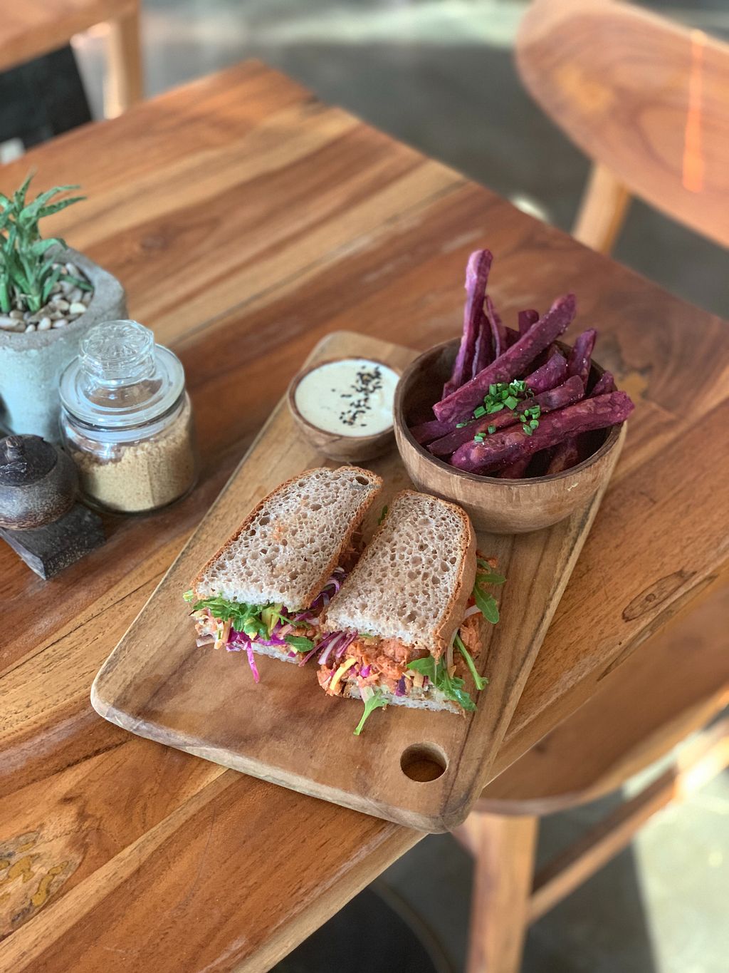 jackfruit burger on gf (upon request) yogurt sauce on side (not vega…