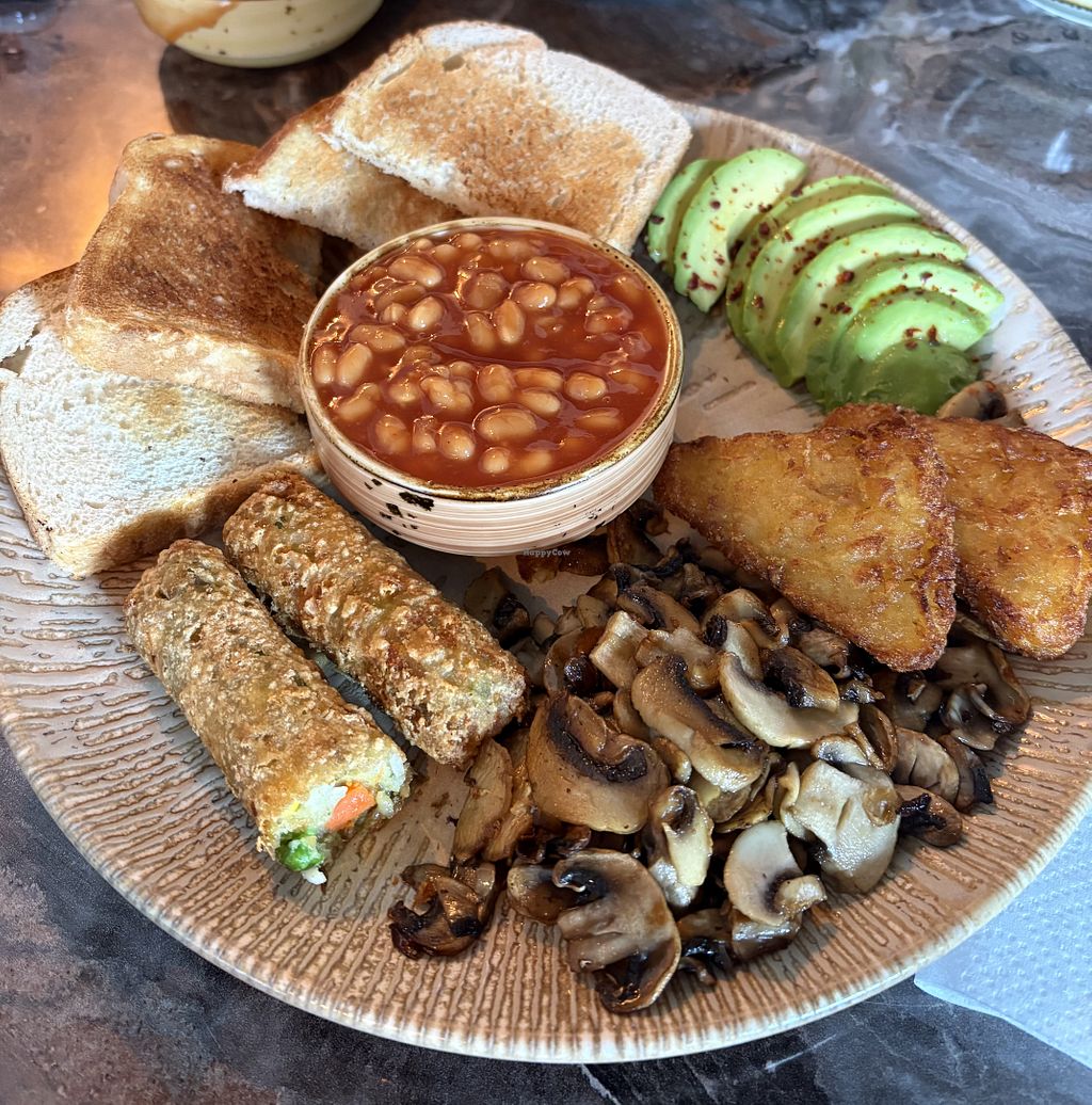 Although the vegan options are extremely limited, the breakfast was delicious! Vegetable sausages (not fake meat) which were nice but would have loved to see proper sausages, mushrooms, beans, avo and hash browns. It does also come with tomato’s but I don’t like them so swapped for extra mushrooms! added toast too. Comes with a coffee or tea. I also had an iced oat milk latte which was lovely!!