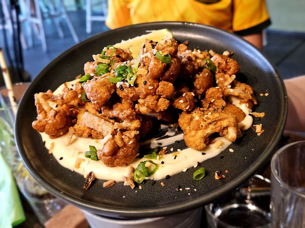 Half eaten (couldnt wait) Spicy glazed cauliflower with vegan ailoi an…