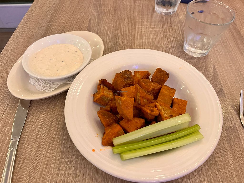 We came for dinner, had the white bean ravioli and the vegan crab cakes. Had the Buffalo seitan wings as an appetizer. Food was really tasty and the service was excellent. Wait for dinner on the weekend can be long so I’d recommend making a reservation.