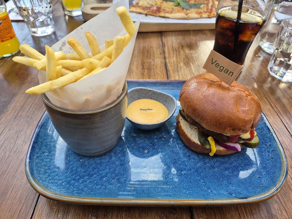 Vegan flatbread with hoisin sauce, “duck” and spring onions