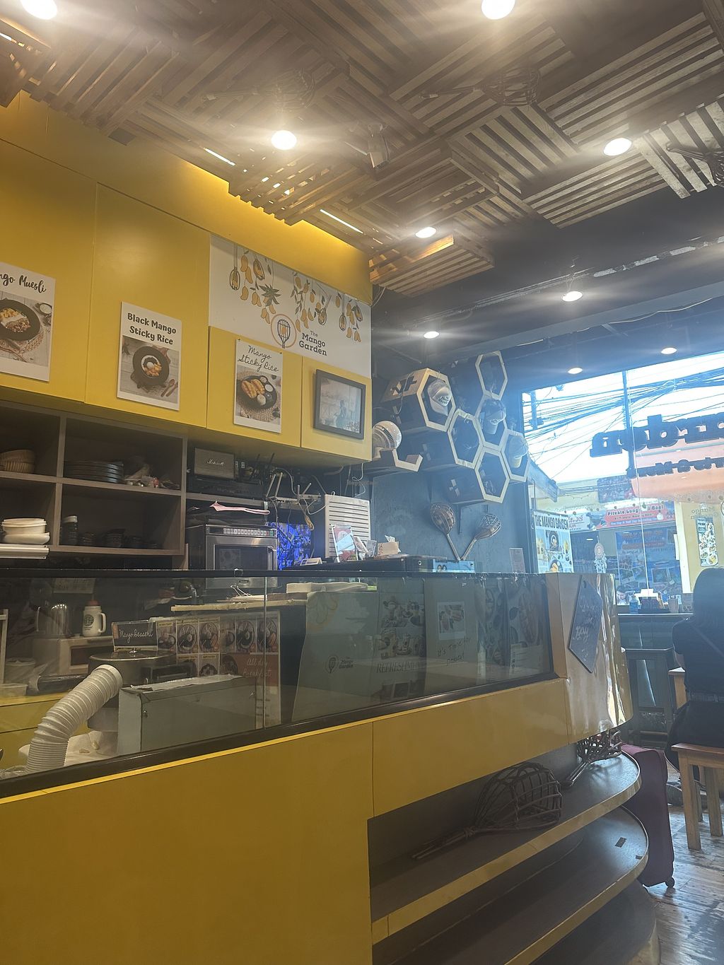 Mango sticky rice is a cheap street food and a snack at that. Adding some gold specks and charging 185 for it is ridiculous. Can get a full meal for half the price. That being said, service was good and quiet modern cafe like atmosphere is a good break from outside.