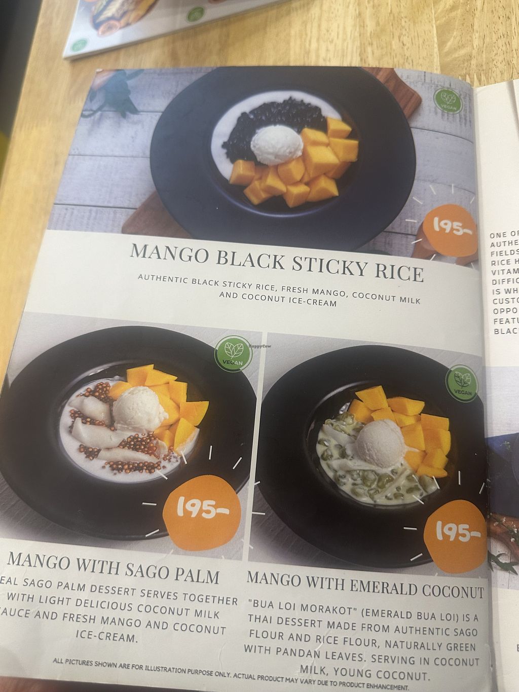 We tried the 180 baht Mango Sticky Rice which is vegan and it was really awesome and worth the experience.