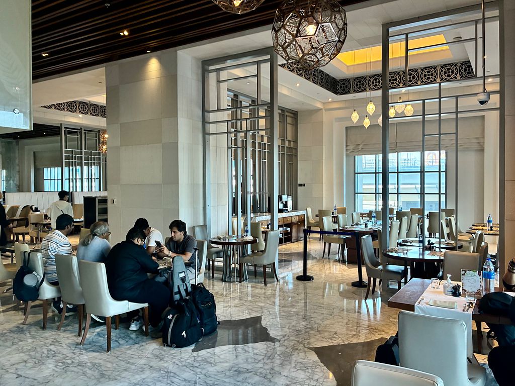 Serves meat, vegan options available. A buffet and brunch restaurant within the Hilton Dubai Al Habtoor City hotel serving international cuisine. Open to the public. Allergens on the buffet items are clearly marked. Vegan choices include fresh-cut fruit, vegetable maki, wok-fried noodles, vegetable dumplings, eggplant salad, aloo gobi, lentil dal, vegetable curry, mapo tofu, falafel, foul bil zeit, pizza, a salad bar, plus a selection of breads and condiments. Open Mon-Sun 6:30am-10:30am, 7:00pm-10:30pm, Mon-Fri 12:30pm-3:00pm, Sat 1:00pm-4:00pm, Sun 12:30pm-3:00pm.