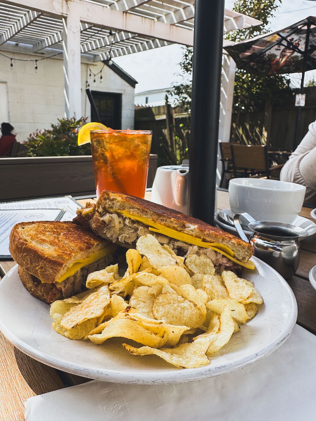 They've been open since December 2021, but I did not find out about this place until I read an article about them on Delaware Today a couple of weeks ago! Mercury needs more reviews on this app! We had the pulled-oat "pork" sandwich, classic grilled cheese, merc melt, tomato basil soup, side salad, potato chips, three decaf espressos with oat creamer and hazelnut, apple juice, iced tea with fresh squeezed lemon juice. and a big fat chocolate chip cookie🤤🤤🤤