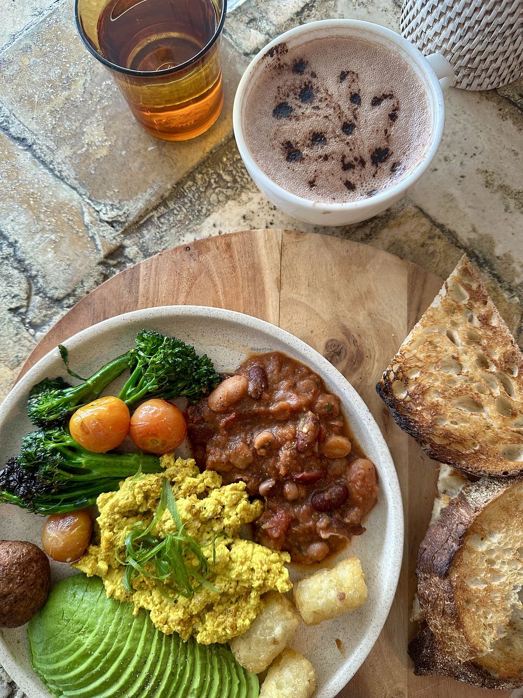 Good big brekkie! Just ask for vege option and you get tofu scramble instead of eggs😄