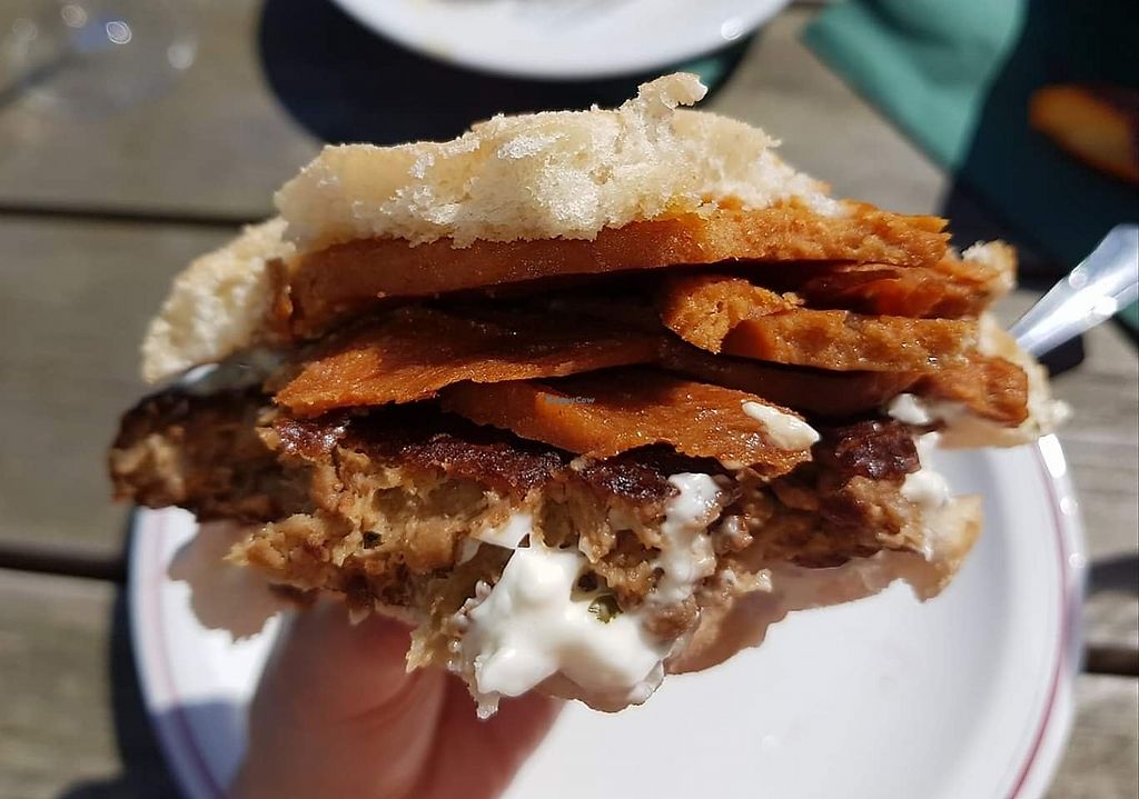 so disappointing, really wanted to like this place!! food took over an hour to arrive (after being told about 30 mins), which i cannot understand - it was early on a saturday evening and there were a few tables but not super busy?! they didn’t have any bacon or sausages, so ordered a bbq burger and a doner kebab. the burger was just a linda mccartney burger patty, that was quite burned, with a slice of violife cheese, limited bbq sauce and two onion rings, and soggy chips. the kebab was just some seitan in a brown pita, no sauce or salad in the kebab - so dry and bland.