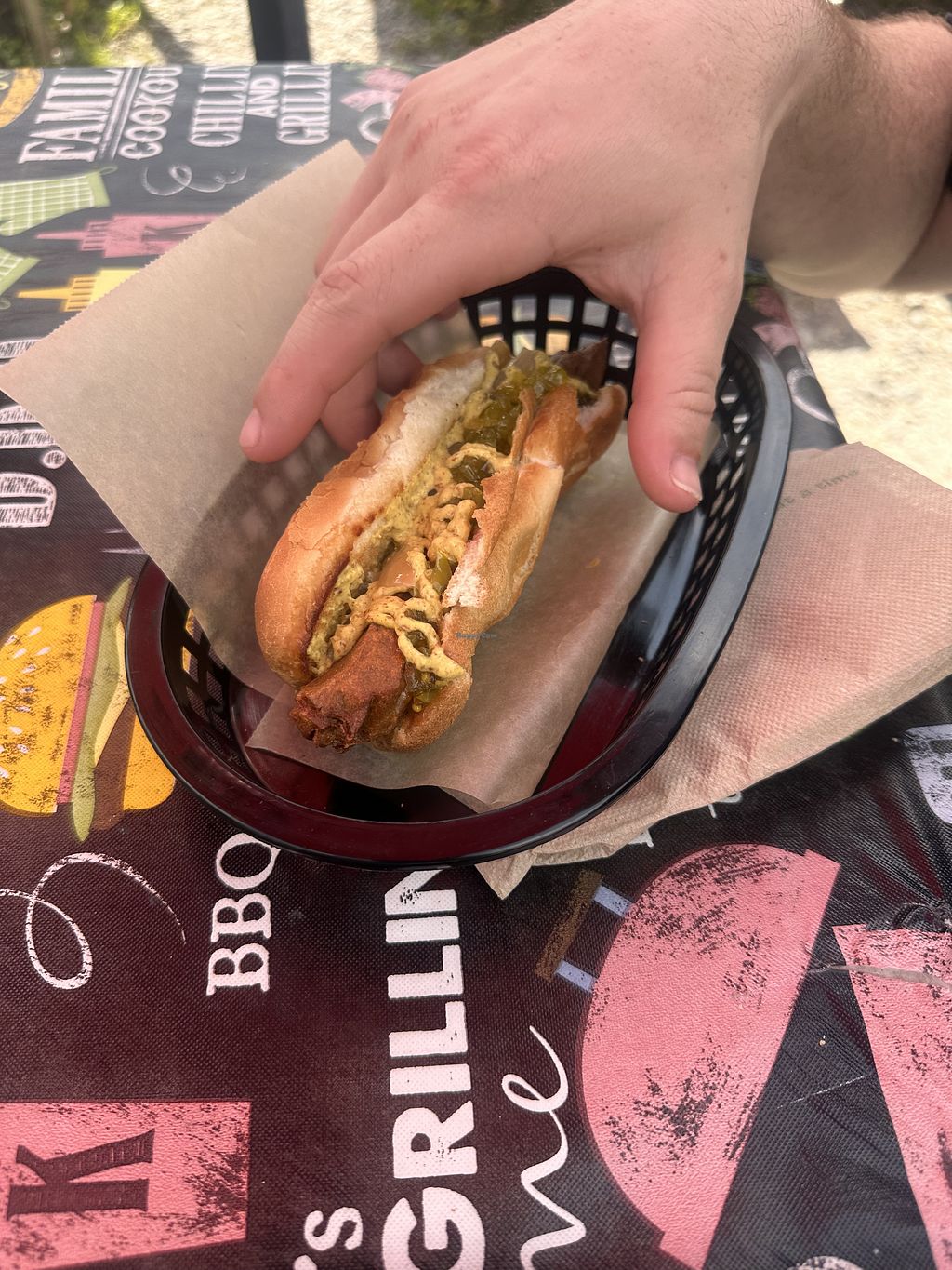 Got the Chicago Dog, was pretty tasty! Zero pleasantries tho. I asked what the dog was made of and she said “Vegetables. I’m not telling you more.” Okay then... Tasted pretty much like a veggie patty, pressed into a hotdog shape, but I’ll take it!