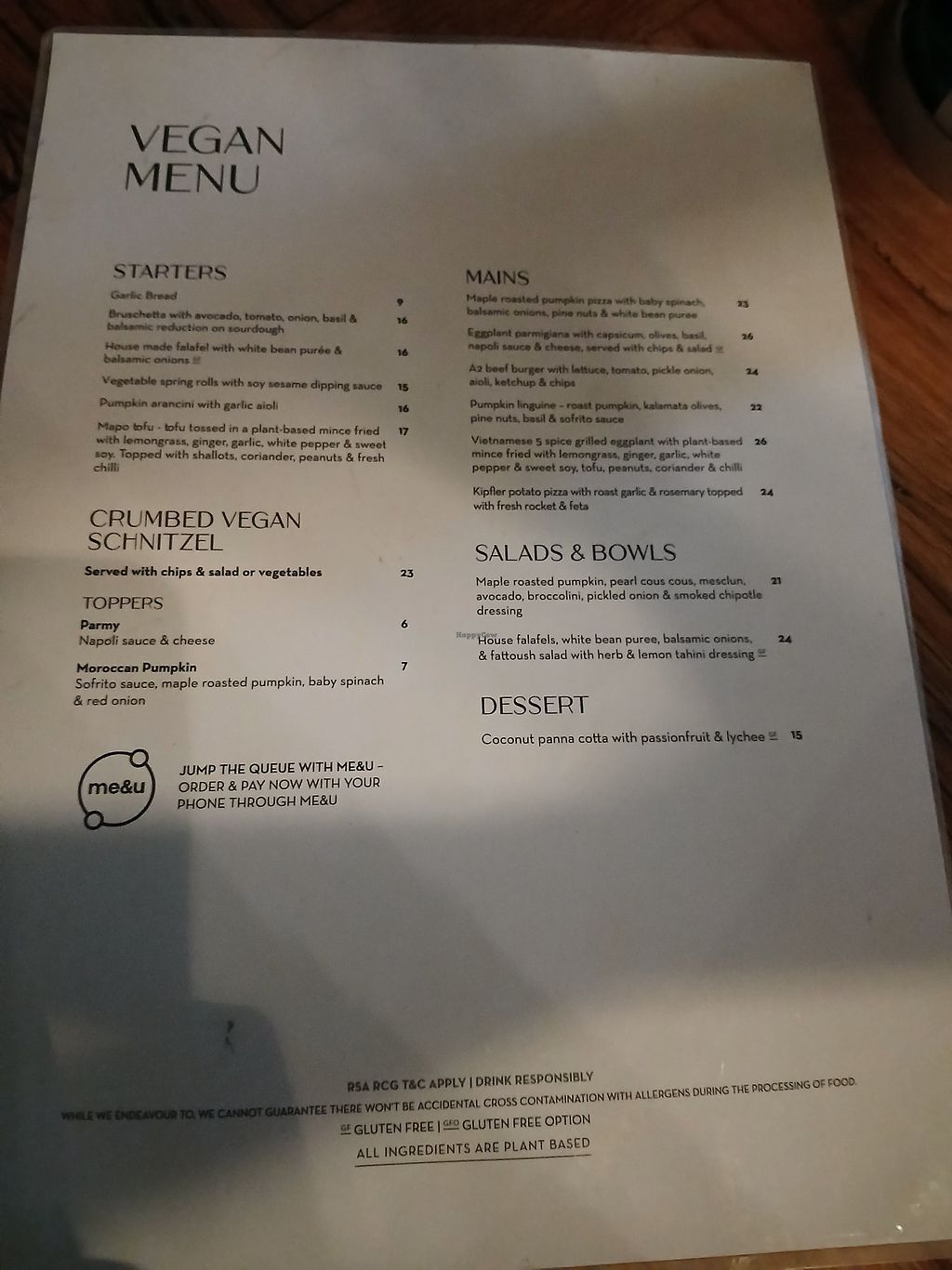 Pleasantly surprised at the range of vegan options. There is a dedicated vegan menu with more then plenty options to choose from.