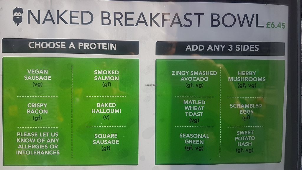 Serves meat, vegan options available. City centre café serving healthy naked bowls, fresh juices, breakfast bowls and coffee. Naked breakfast bowls come with a protein including vegan sausages and three sides such as smashed avocado, herby mushrooms and sweet potato hash. Naked lunch bowls come with a protein including vegan meatballs & vegan Thai fritters and two sides such as roast sweet potato wedges, kale & fennel slaw and seasonal greens with chilli & garlic. Can also grab a vegan meatball wrap or a vegan burger as well as a range of smoothies, vegan protein shakes and fresh juices. Reported closed March 2023.