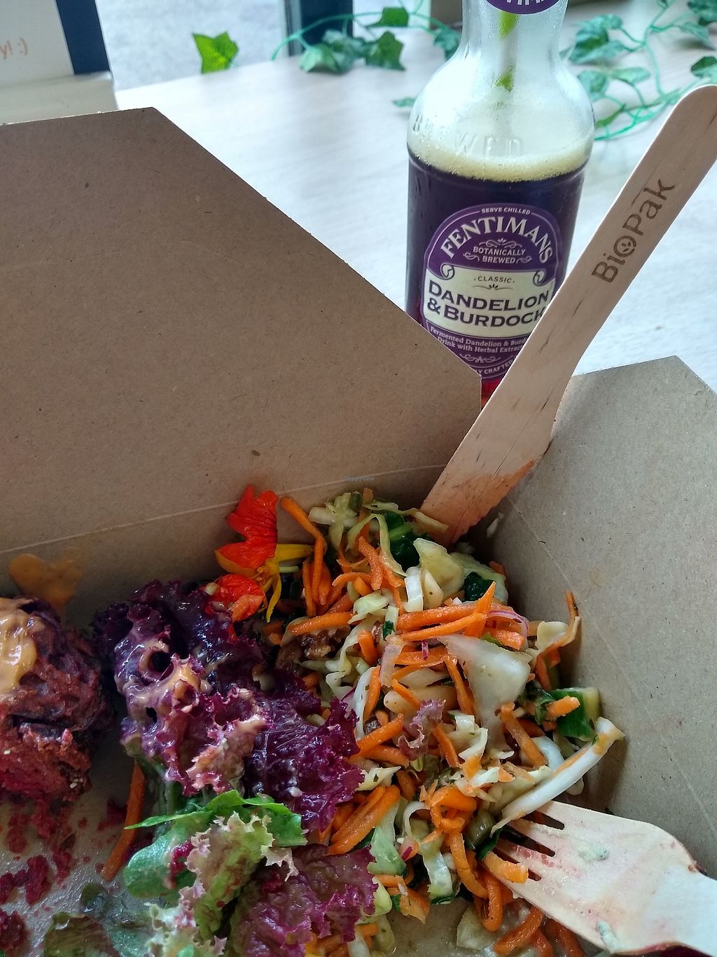Amazing vegan onion Bhahji box! From the natural store deli downstairs…