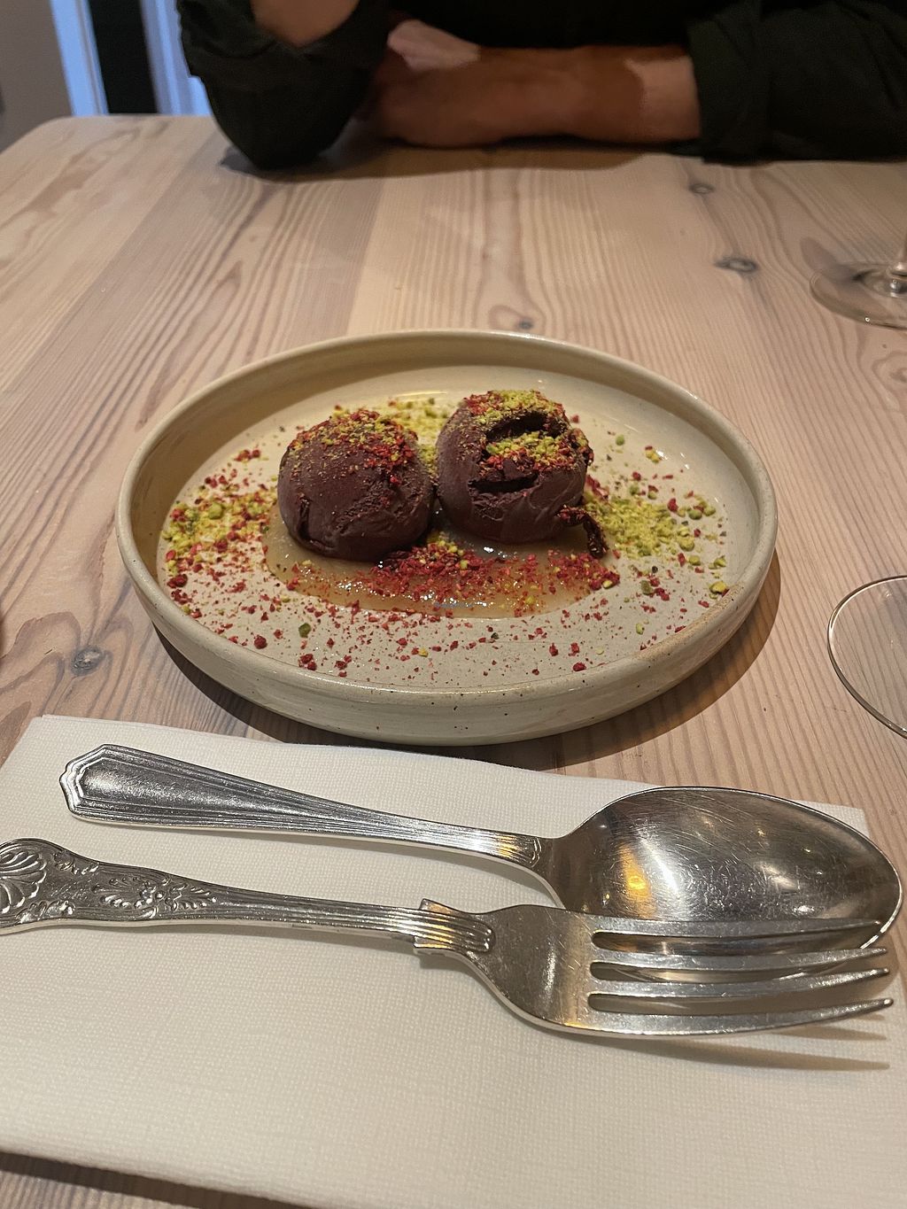 Visited on a Saturday evening, when the menu consisted of small plates (it seems to also have a busy brunch/lunch service earlier in the day). The menu was very well marked in terms of vegan options, including the wines. We shared some sourdough and olives to start, and went for the leeks, cauliflower, courgettes, risotto and fries for main. Each plate was magnificent, presented well and all the flavours worked perfectly. This was plenty of food for both of us, but we managed to squeeze in dessert - only one had a “vegan option available”, blueberry sorbet with meringue. I was hoping for some vegan meringue but unfortunately it was just two scoops of the sorbet - which was nice, but I was a tiny bit disappointed. We shared a bottle of Austrian white wine, but was tempted by a few on the menu. Overall the meal was really enjoyable and offers a great option for vegans in the town.