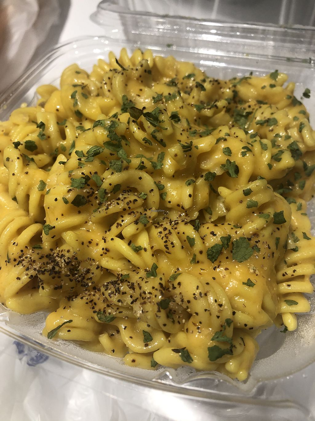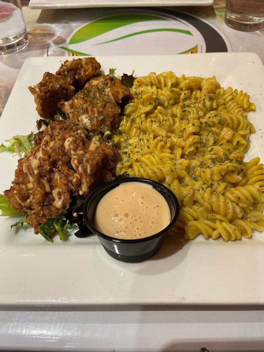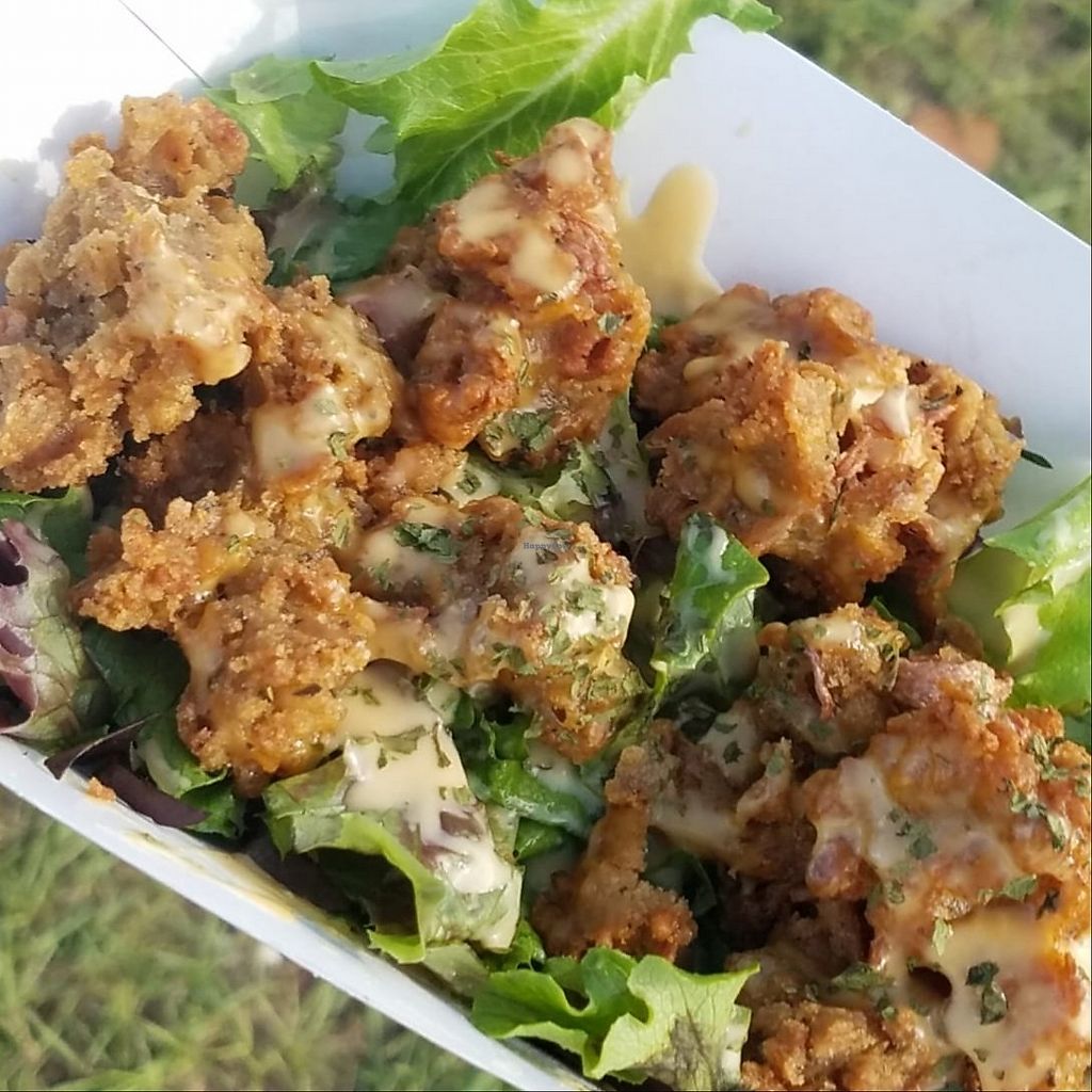 We both ordered the Fried "chicken" and mac and cheese. They must have double or triple breaded it with all the right spices because this was the crunchiest vegan anything I've had. The chicken was jackfruit and seasoned perfectly. The cheese sauce was so creamy and good. They have lots on the menu, but just make sure you call first and ask if they have this on the menu, as it's a special!