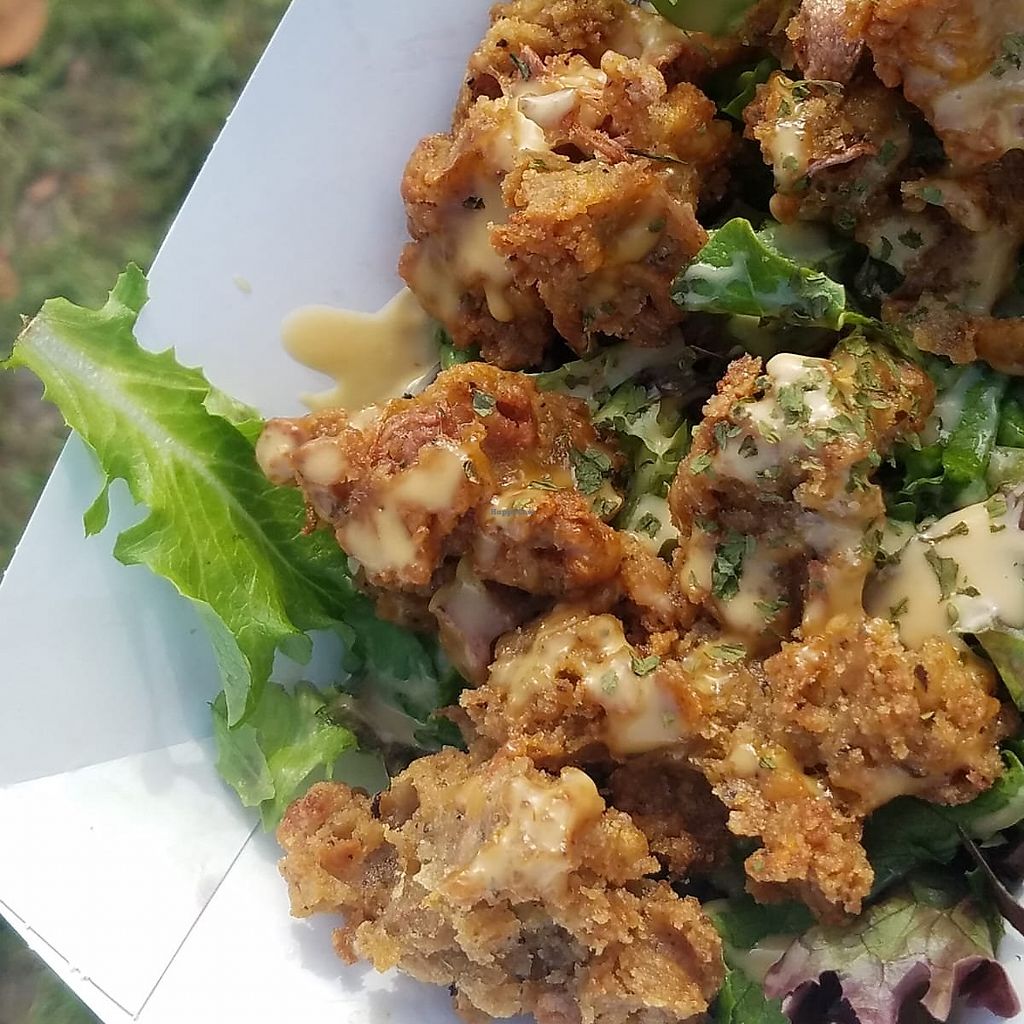 I had the vegan fried chicken and it is to die for. It's made with jackfruit and cauliflower.