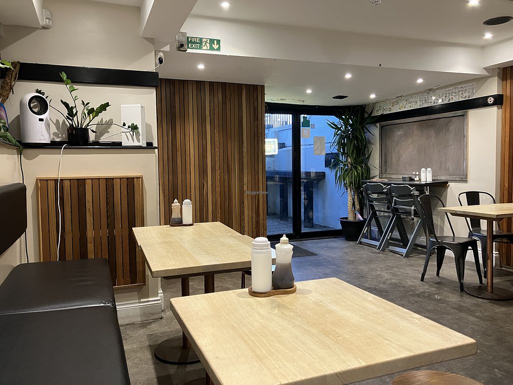 I was quite excited to eat here, knowing it was all vegan fish and chips. The place itself was easy to find. The restaurant has quite small limited seats and a little stuffy. When I arrived there was rubbish on tables etc. Nevertheless, I ordered fish and chips, and at the time, I felt fine eating, but I have to say it was incredibly oily. I had a bad belly for the remaining of the evening. Its a lil pricey aswell. Spent 40 pounds for two persons fish and chips.