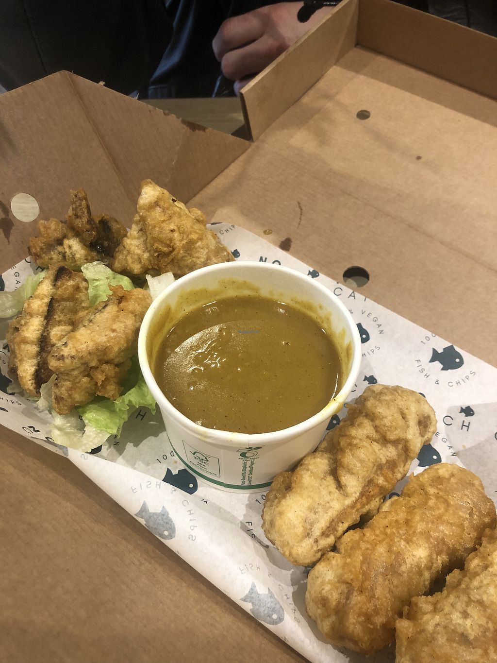 Well thought out and yummy chippy. Portably as close as you could get to the real thing! I got the battered sausages and my partner got the tofish bites. Best curry sauce ever ♥️