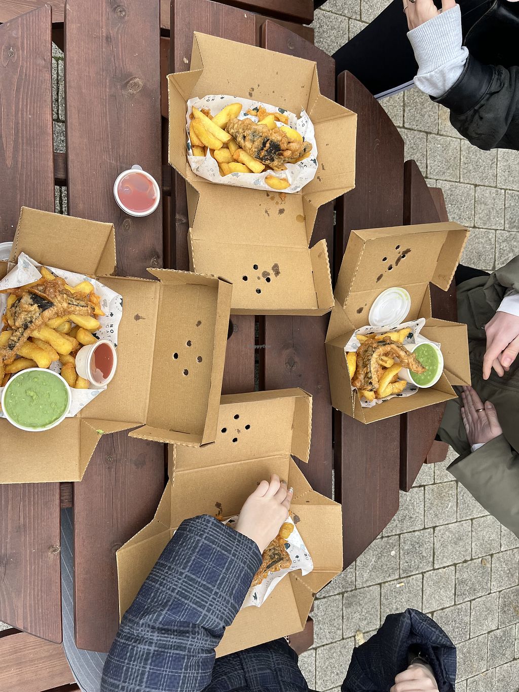 do not miss this spot if you’re in brighton. best fish and chips i’ve ever had, let alone vegan! portion size was perfect; fish n chips and sausage n chips delicious; lovely seating inside and out; excellent service! overall an amazing experience! couldn’t recommend more… i will be coming back immediately when i return to brighton. they’re not open on monday and tuesday though despite it saying they’re open tuesday on happycow and google, as a heads up!