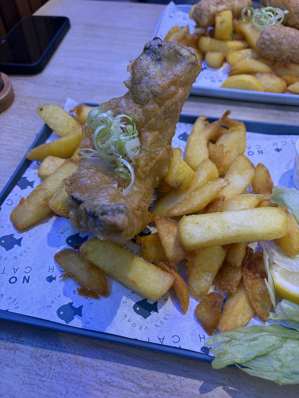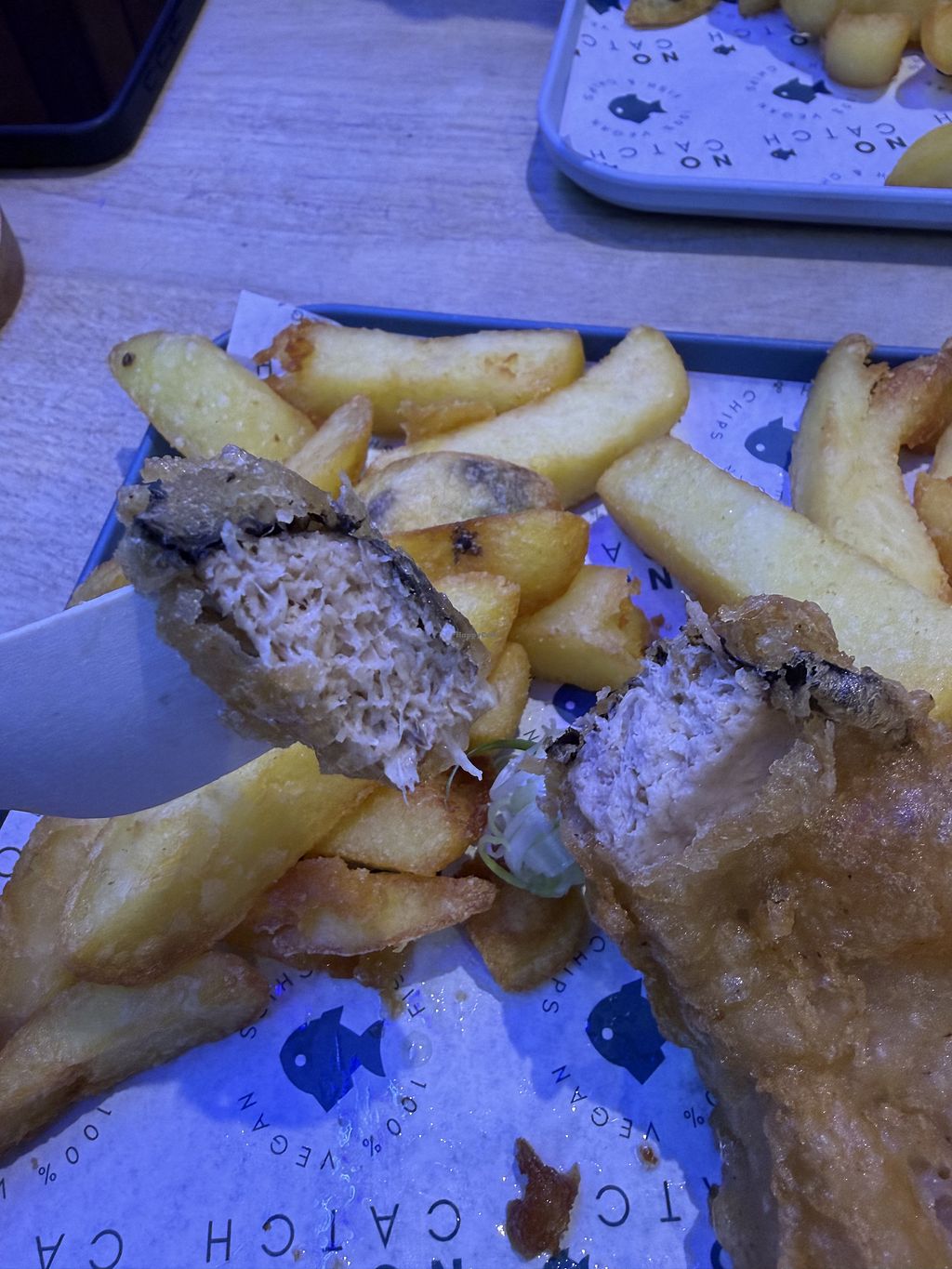 I was excited to visit here, and service was good and always prefer a fully vegan place, but it didn't really make me feel I was in a seaside chippy. The chips were nice, but did not resemble chippy chips I can occasionally get from regular chippies with a vegan/chips only fryer (or I can get from a regular fish and chip shop, if I don't mind cross-contamination from the fryer).