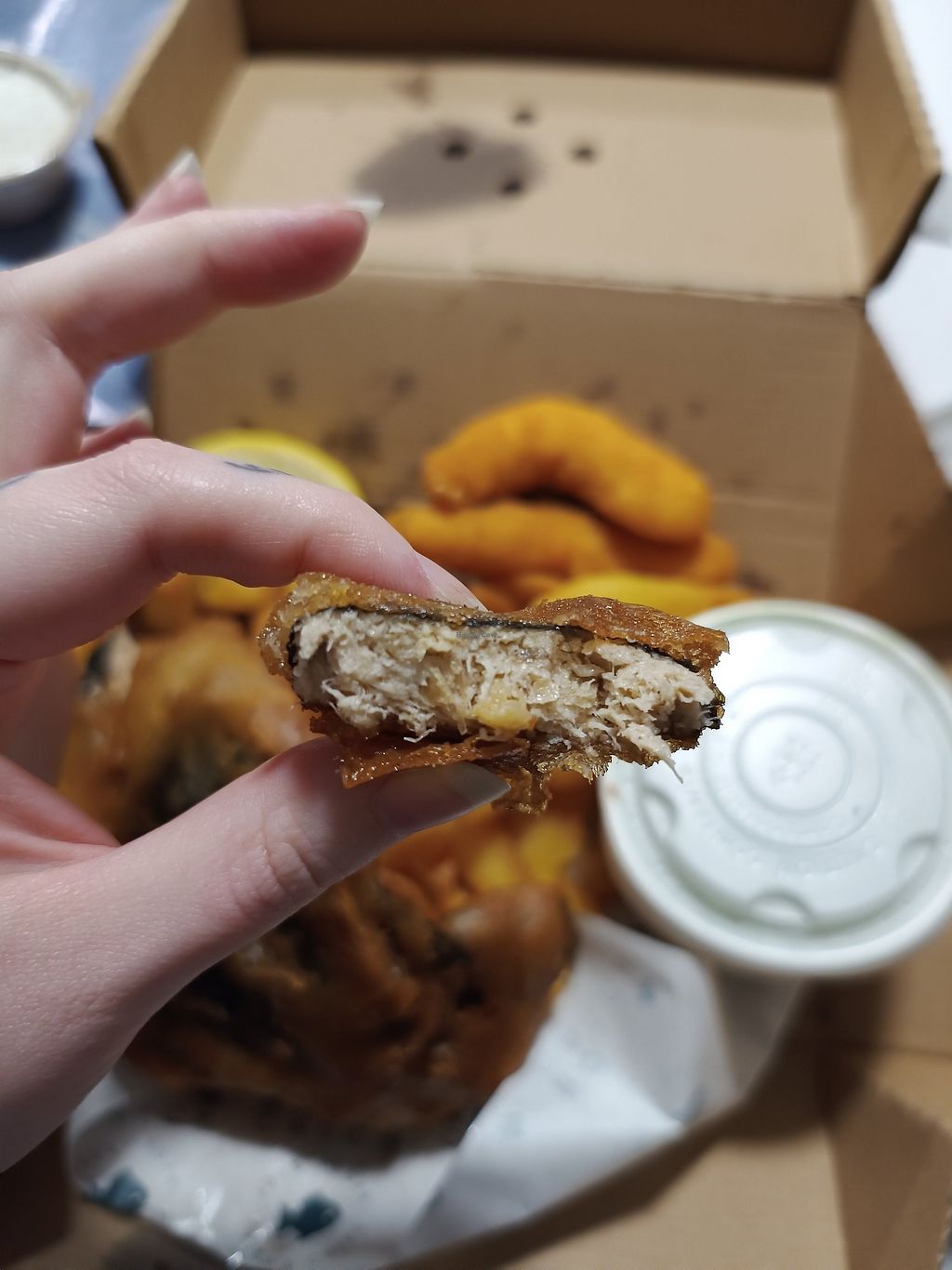 Cod goujons (near) and battered sausage