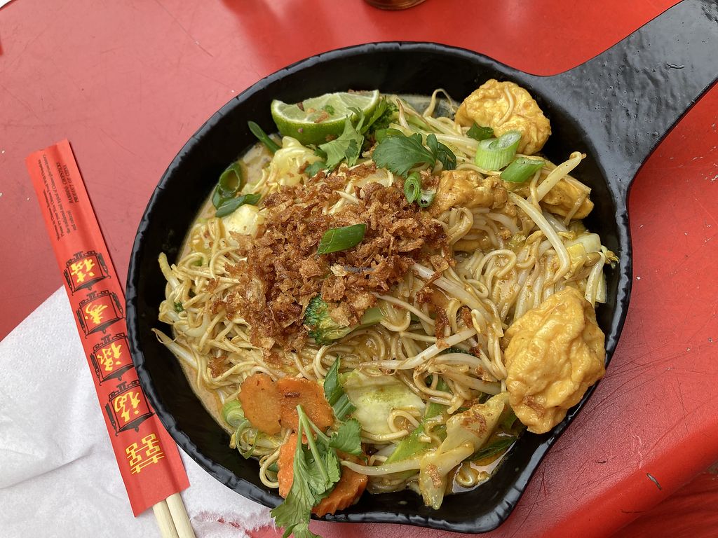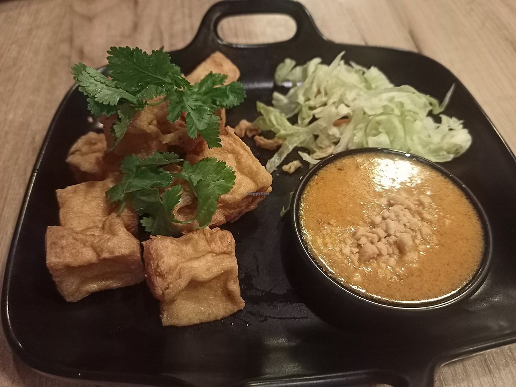 Fried tofu with peanut sauce and chow mei (bami with home made sauce) …