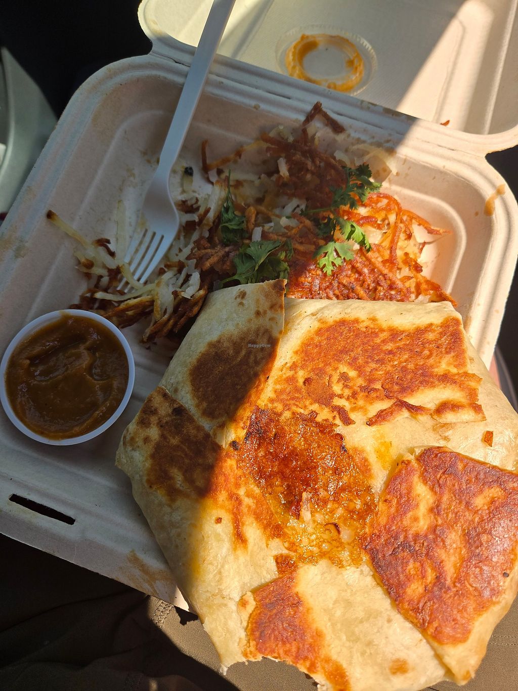 Love that they have a separate vegan menu. The sandwich and chorizo scramble were great. The hash browns were ok and more of like a side item.