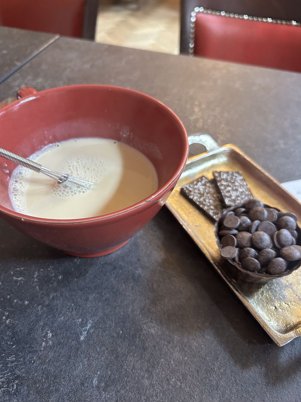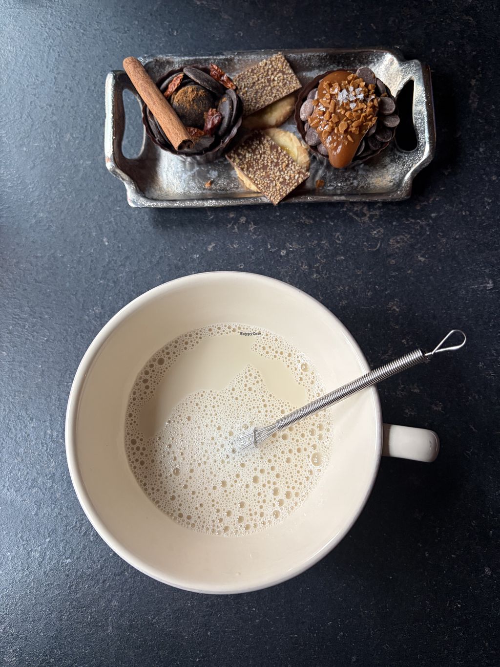 Hot oat milk, chocolate on the side