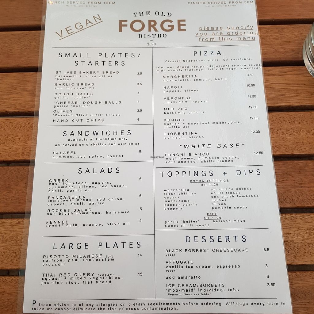 Vegan menu