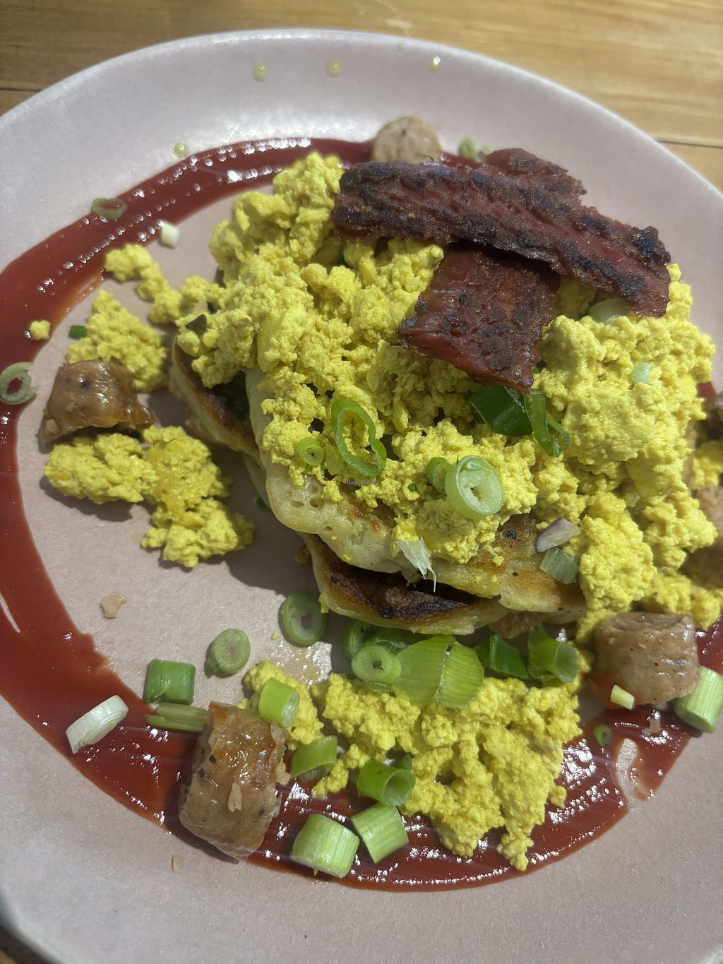 Read morePros: Stacked high pancakes with scrambled tofu , Vegan sausage and rashers, Great menu, good friendly service.