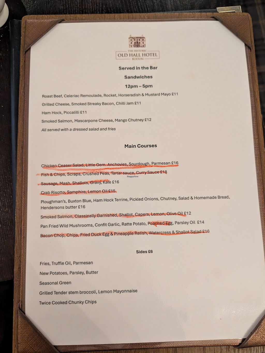 Serves meat, vegan options available. Quaint old fashioned hotel with nice restaurant and more casual bar area., Roast Cauliflower Steak (curried), Wild Mushroom Risotto (without the parmesan), Pan Fried Wild Mushrooms (without the egg)