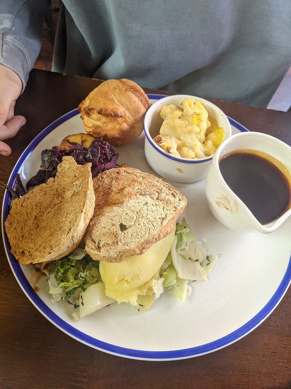 Vegan chicken roast, cauli cheese, hendos gravy, red & green cab bage,…