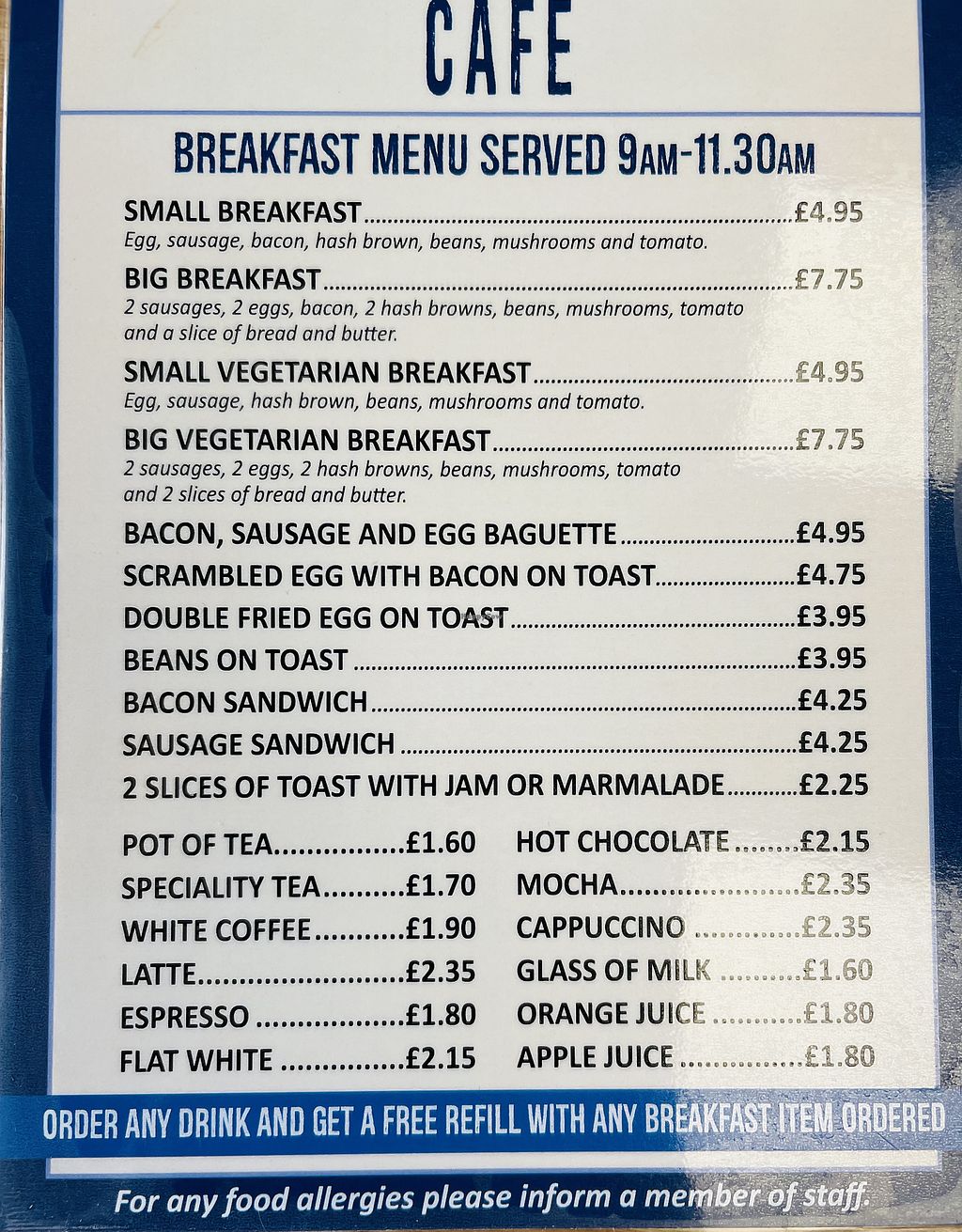 Read moreVegetarian breakfast can be modified to be vegan (minus vegetarian sausages which contain egg, minus eggs, minus butter for the bread / swap for vegetarian burger which is vegan, margarine for the bread and the restaurant add extra hash browns etc).