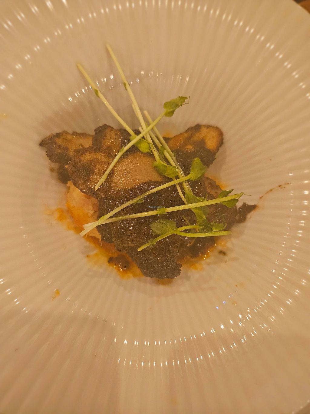 We hadden een 3 gangen kerstmenu besteld. Het gratis drankje was voor mij niet te drinken, te véel gember. Voorgerecht verkeerd gebracht. Hoofdgerecht was ontzettend lekker. Het dessert, een limoentaart, kwam recht uit de diepvries en was nog niet ontdooit. De bediening zei dat we het dan maar nog even moesten laten staan!? Er werden ons 5 warme dranken aangerekend maar hadden er maar 2 besteld. Omdat de taart bevroren was, kregen we uiteindelijk de warme drankjes van het huis. De bediening was traag en leek er niet echt bij te zijn. Bij andere mensen hadden ze een fles wijn te veel aangerekend. Het was niet druk, dus daar kon het niet aan liggen. Verder was het er koud. Helaas veel te duur voor wat het was. Misschien is het er beter op andere dagen? Ik ben er gegaan omwille van de goede reviews.