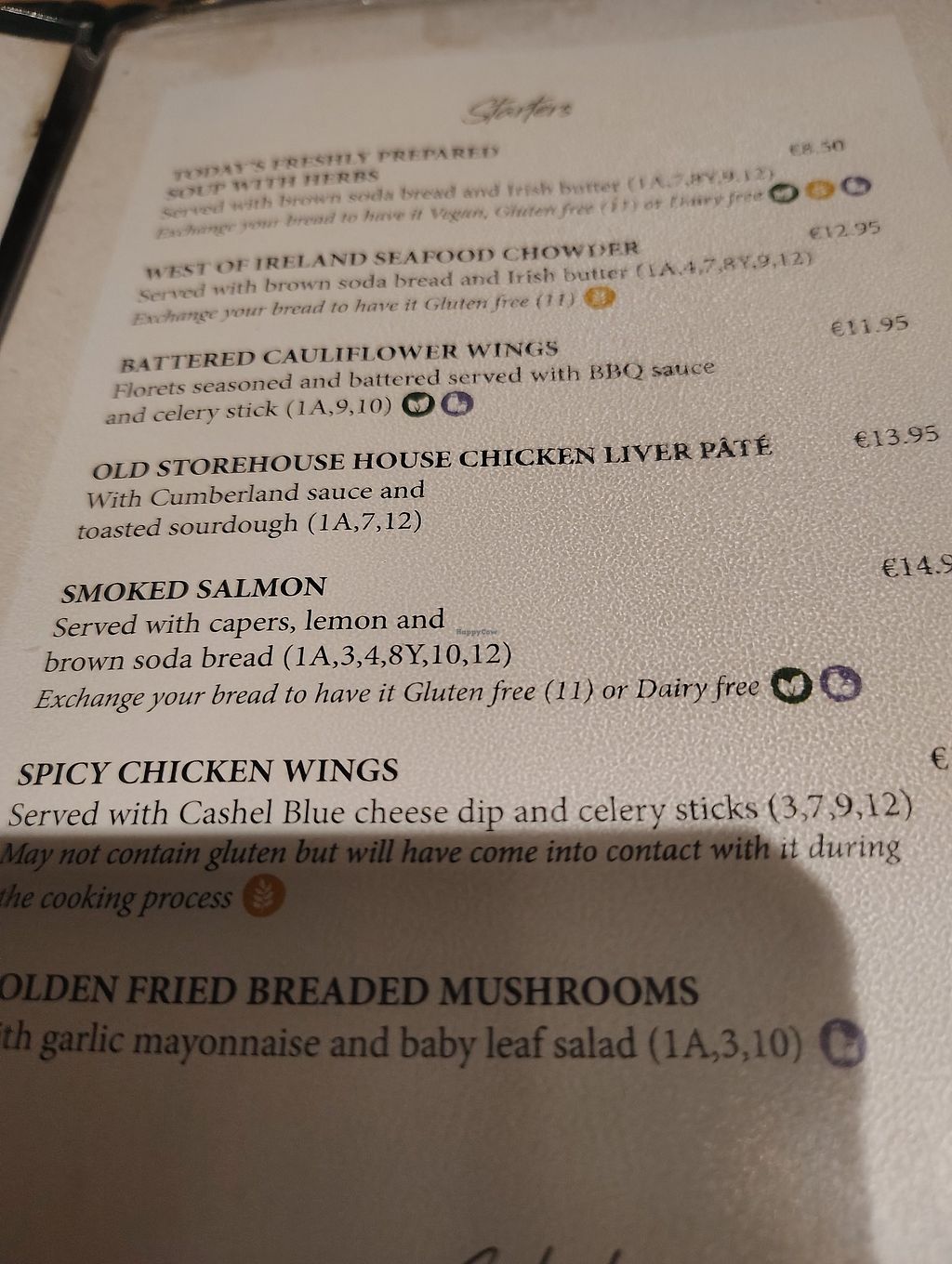 Obviously, fish is not vegan! I was confused and concerned when I saw this on the menu at The Storehouse (see pics). Firstly, there wasn't a separate menu for vegan food. Secondly, any dish that was or could be 'made' vegan was noted by a symbol on the menu.