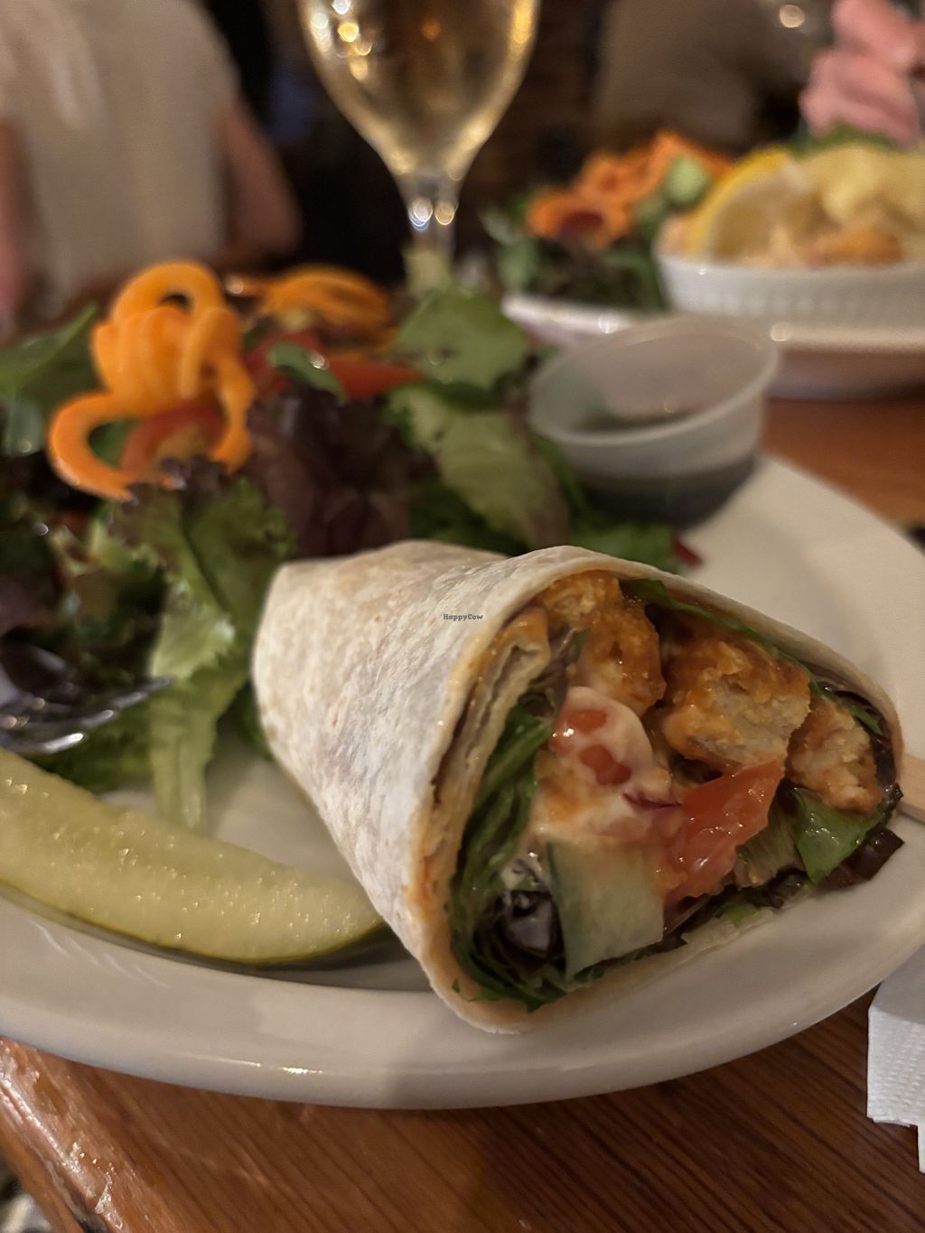 I have tried their vegan wings, not as good as the soy drumsticks you can find out there. At Angel Inn it is definitely about the buffalo vegan wrap. Crunchy, flavourful, wrap goodness. I would definitely order it again.