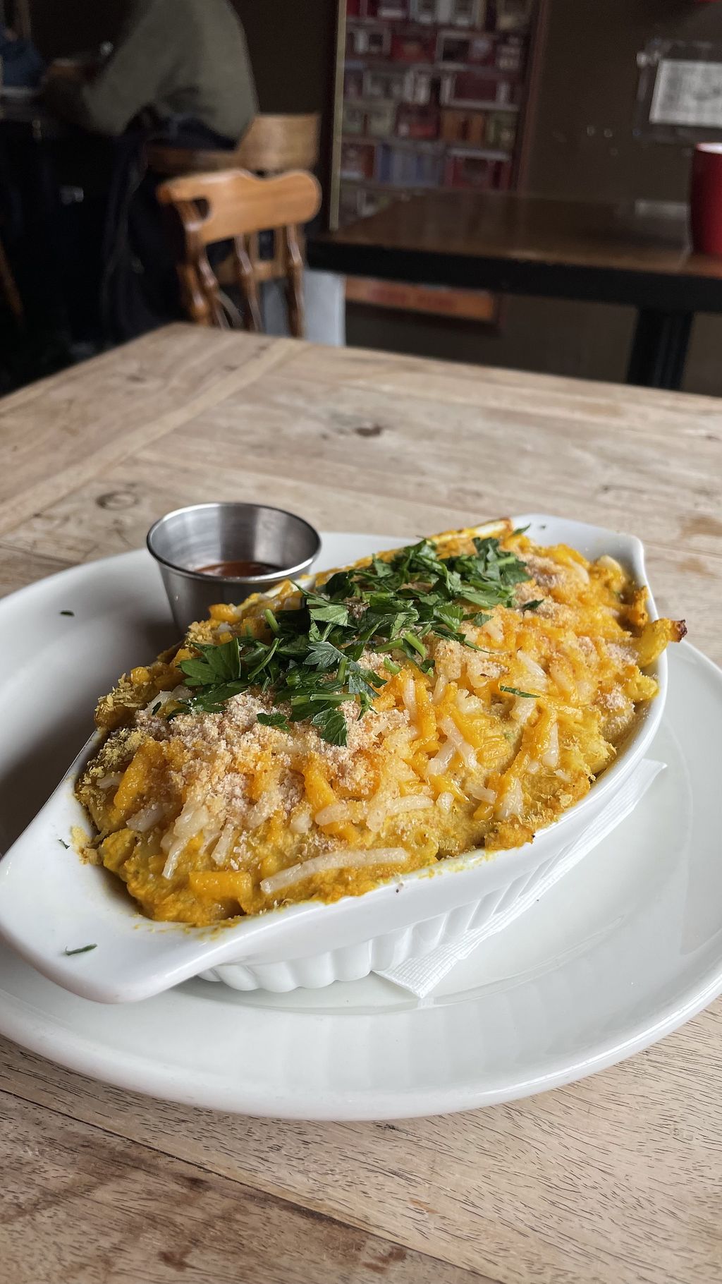 Had there chili, mac n cheese and brekkie buritos, all excellent. Has as well vegan biscuit and alright coffee.